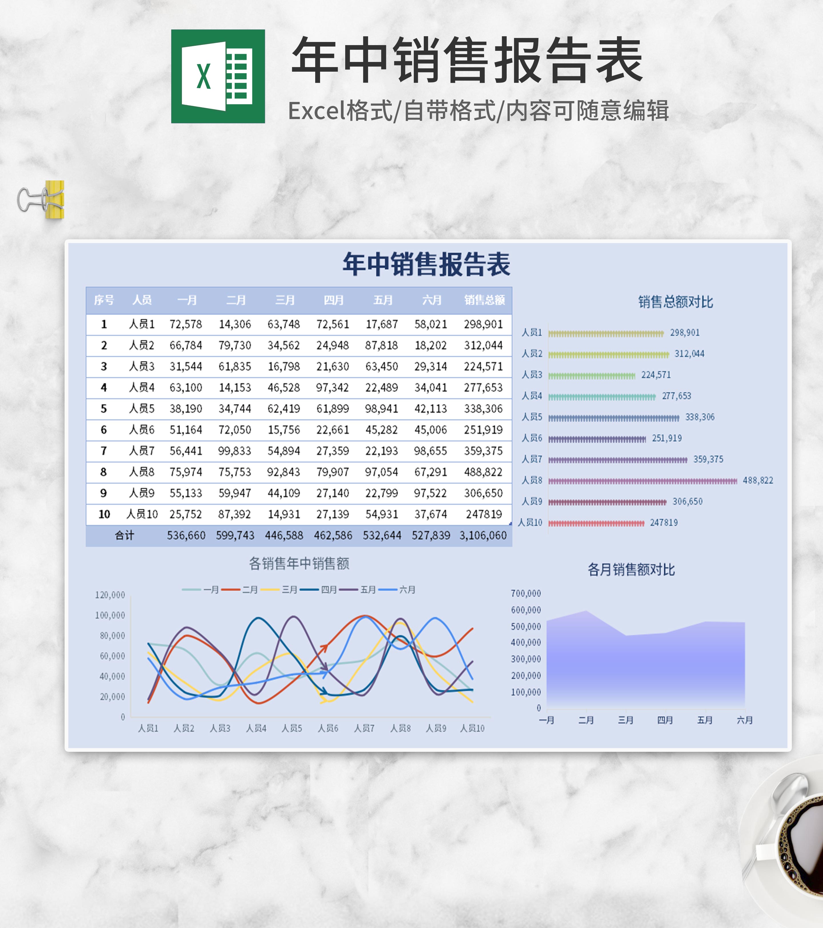 年中数据分析汇报Excel模板