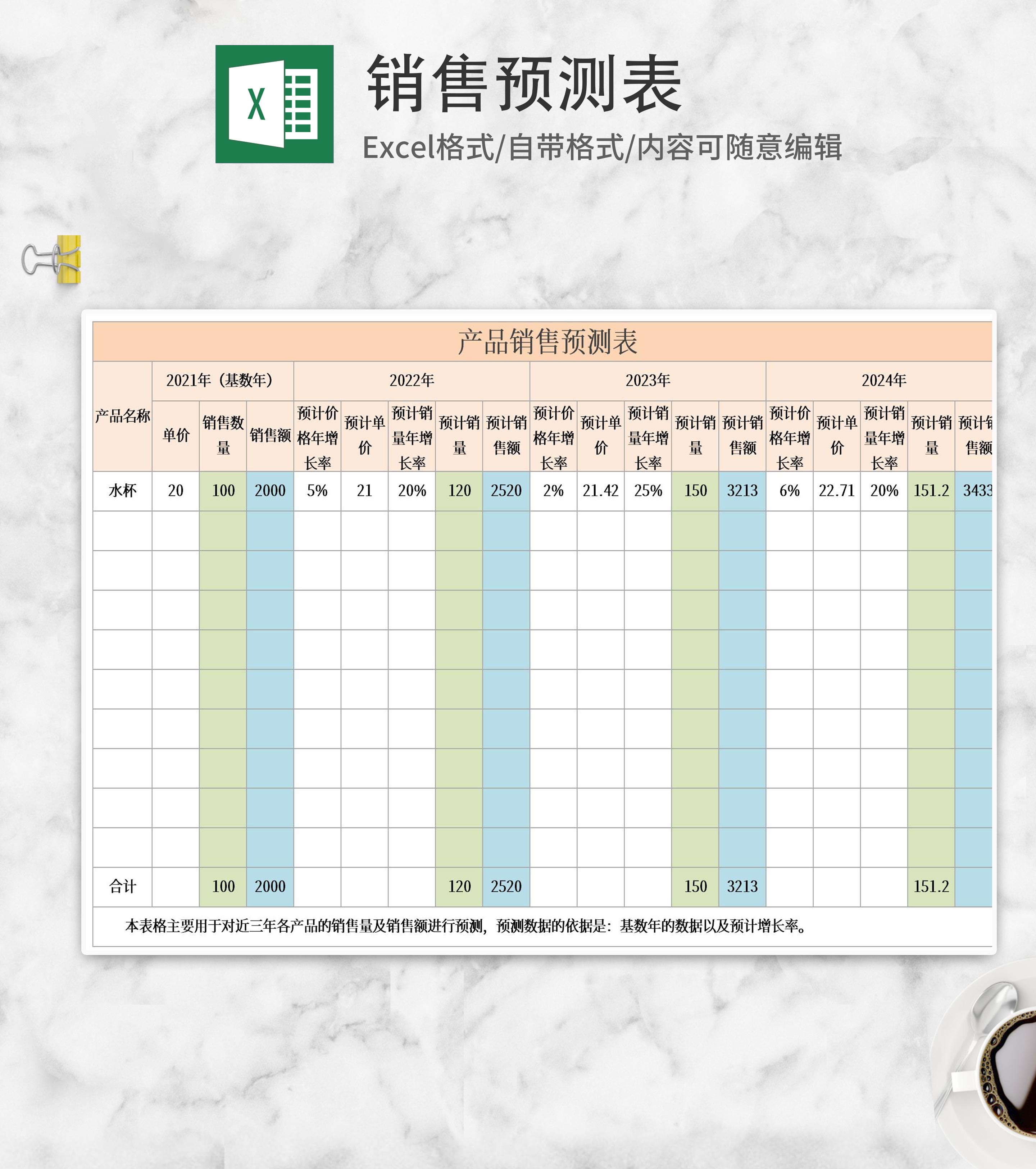 产品年度销售预测表Excel模板