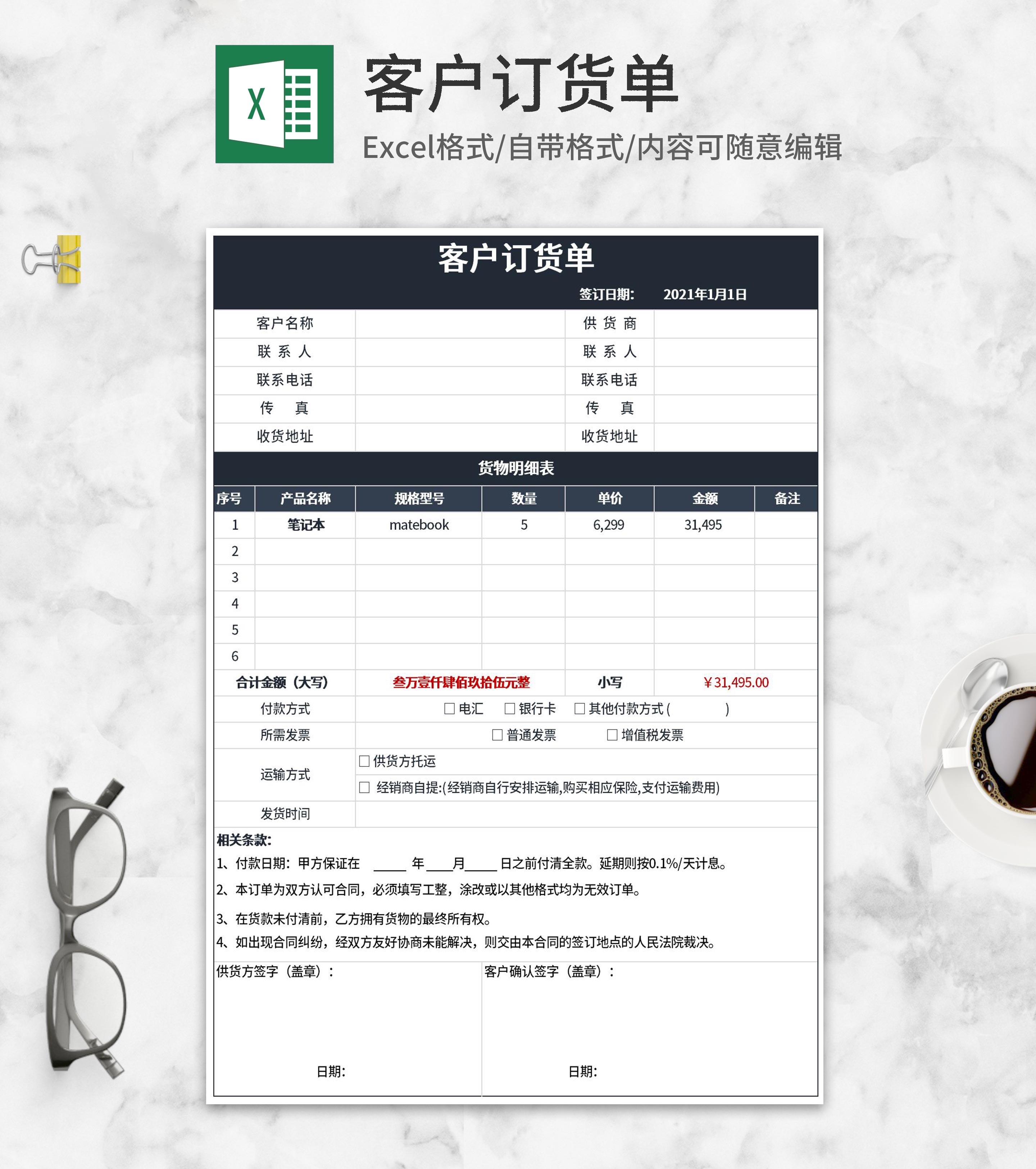 客户订货单Excel模板