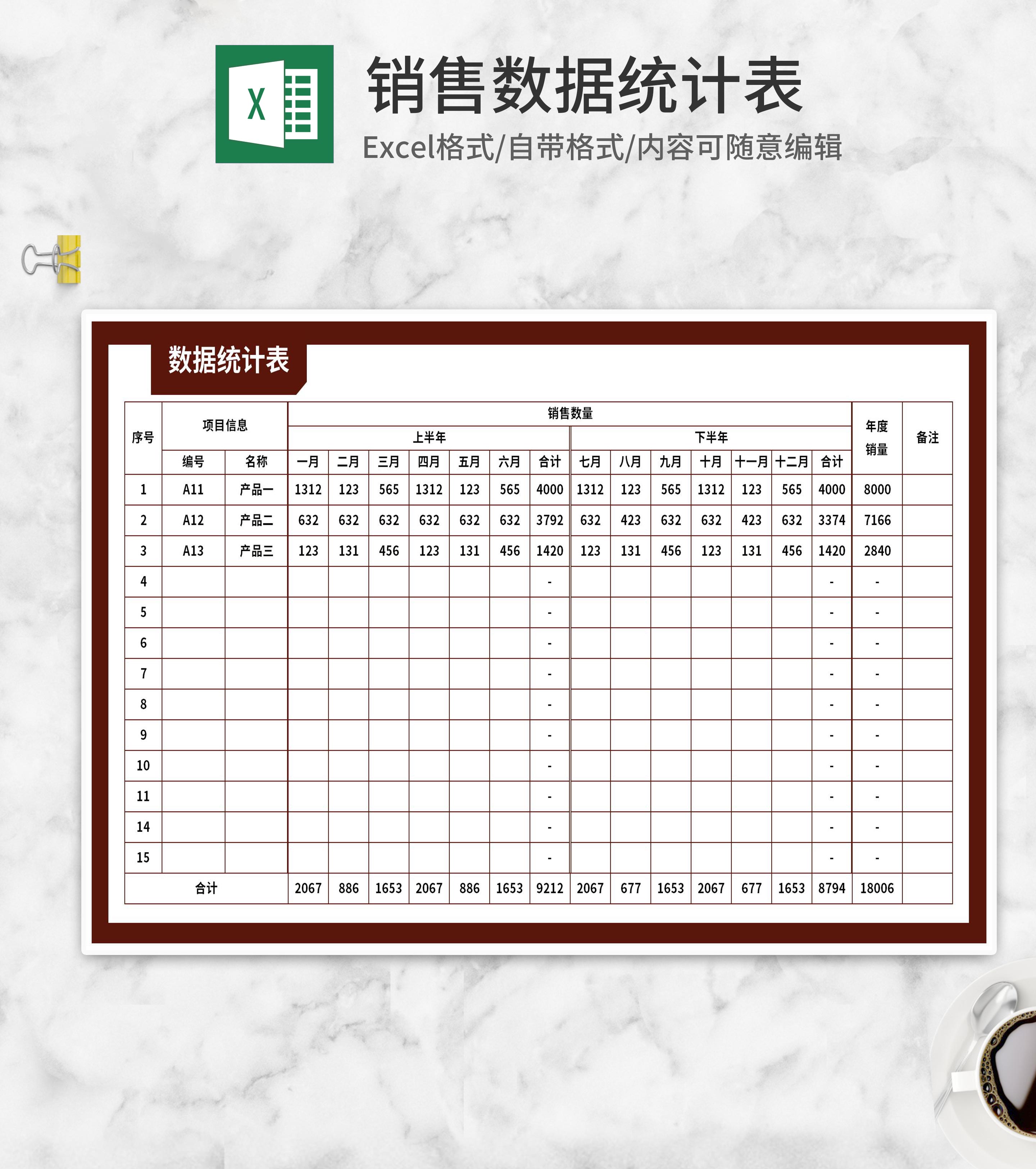 产品销售数据统计表Excel模板