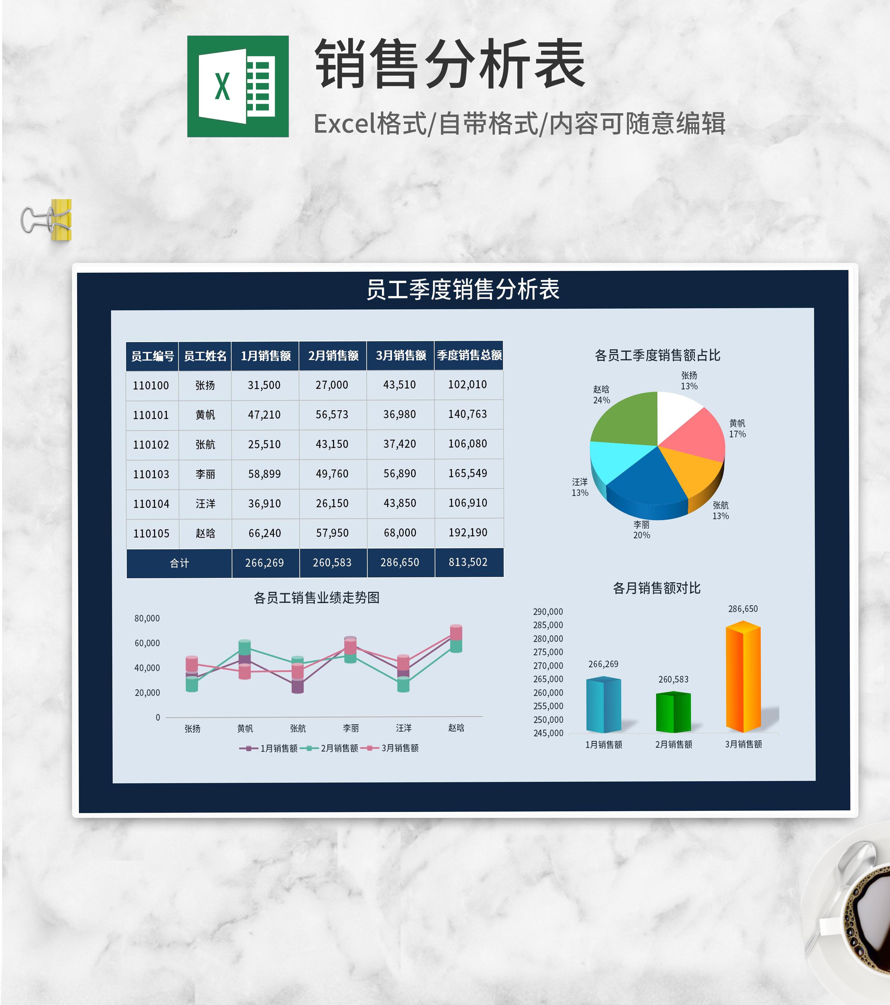 员工季度销售分析表Excel模板