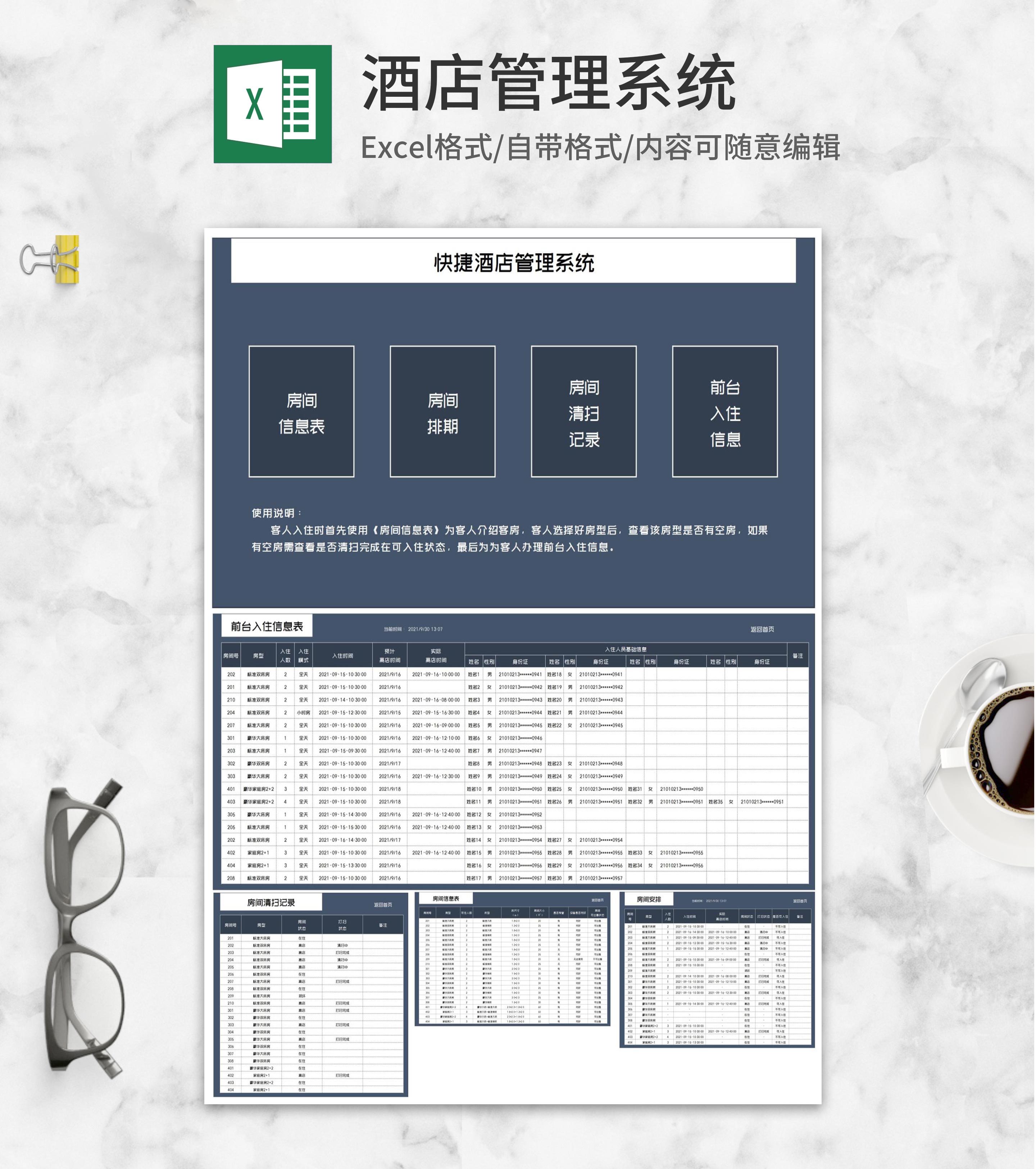 快捷酒店房间管理系统Excel模板