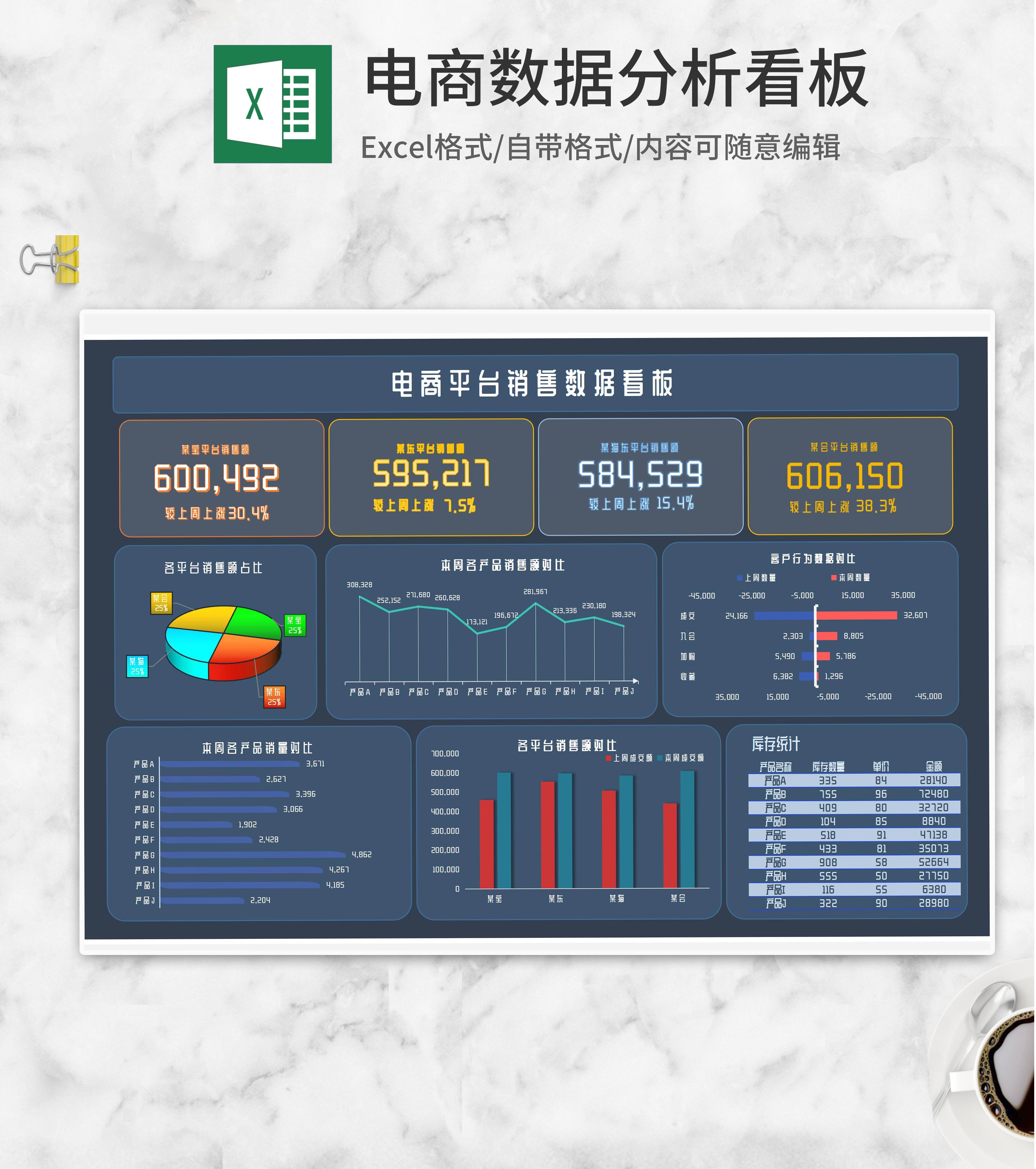 电商平台产品销售数据看板Excel模板