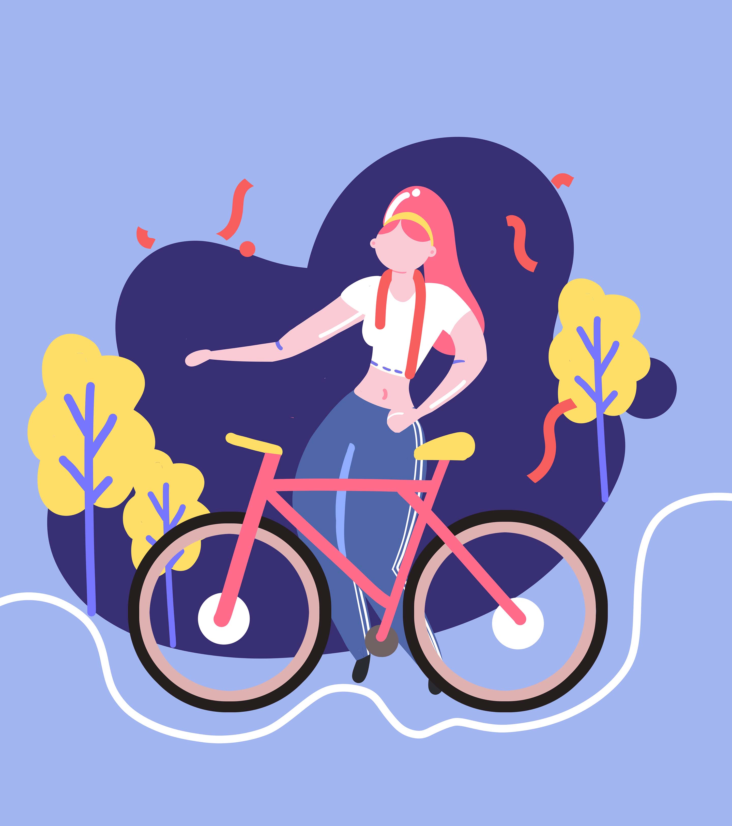紫色年轻骑行女孩元素