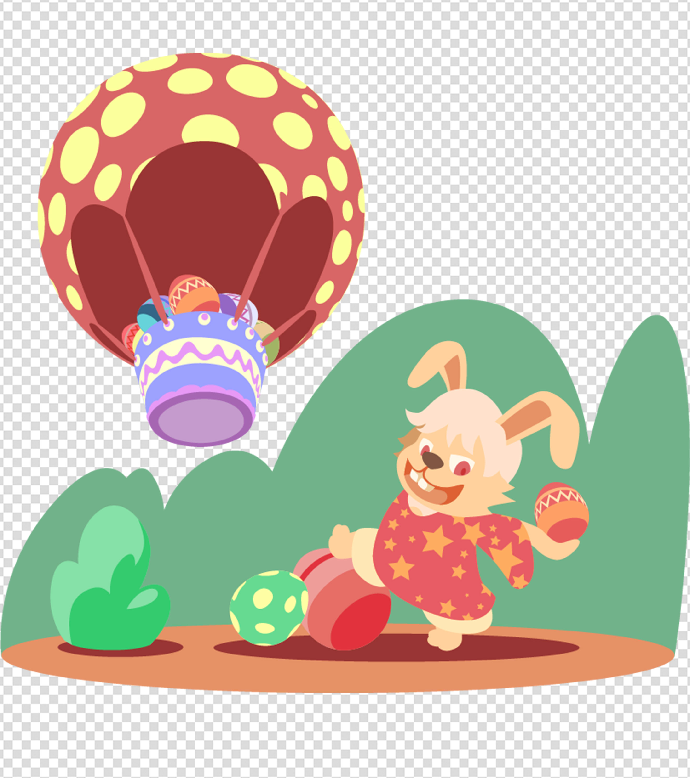 可爱兔子热气球复活节元素