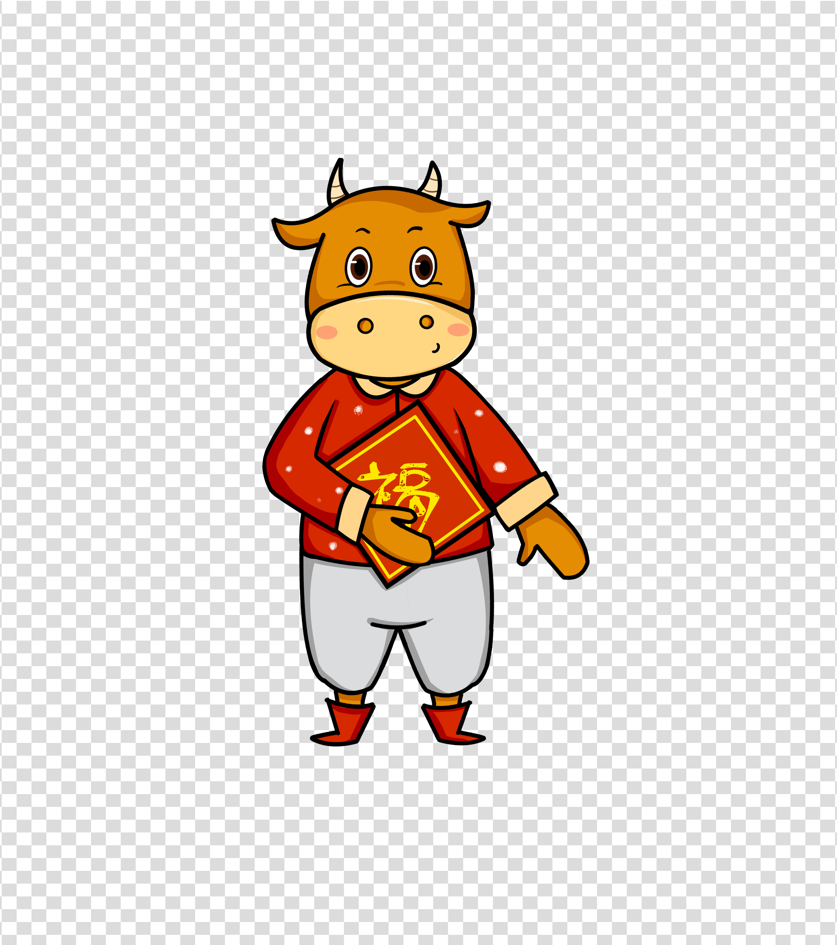 中国风抱福字的牛卡通元素