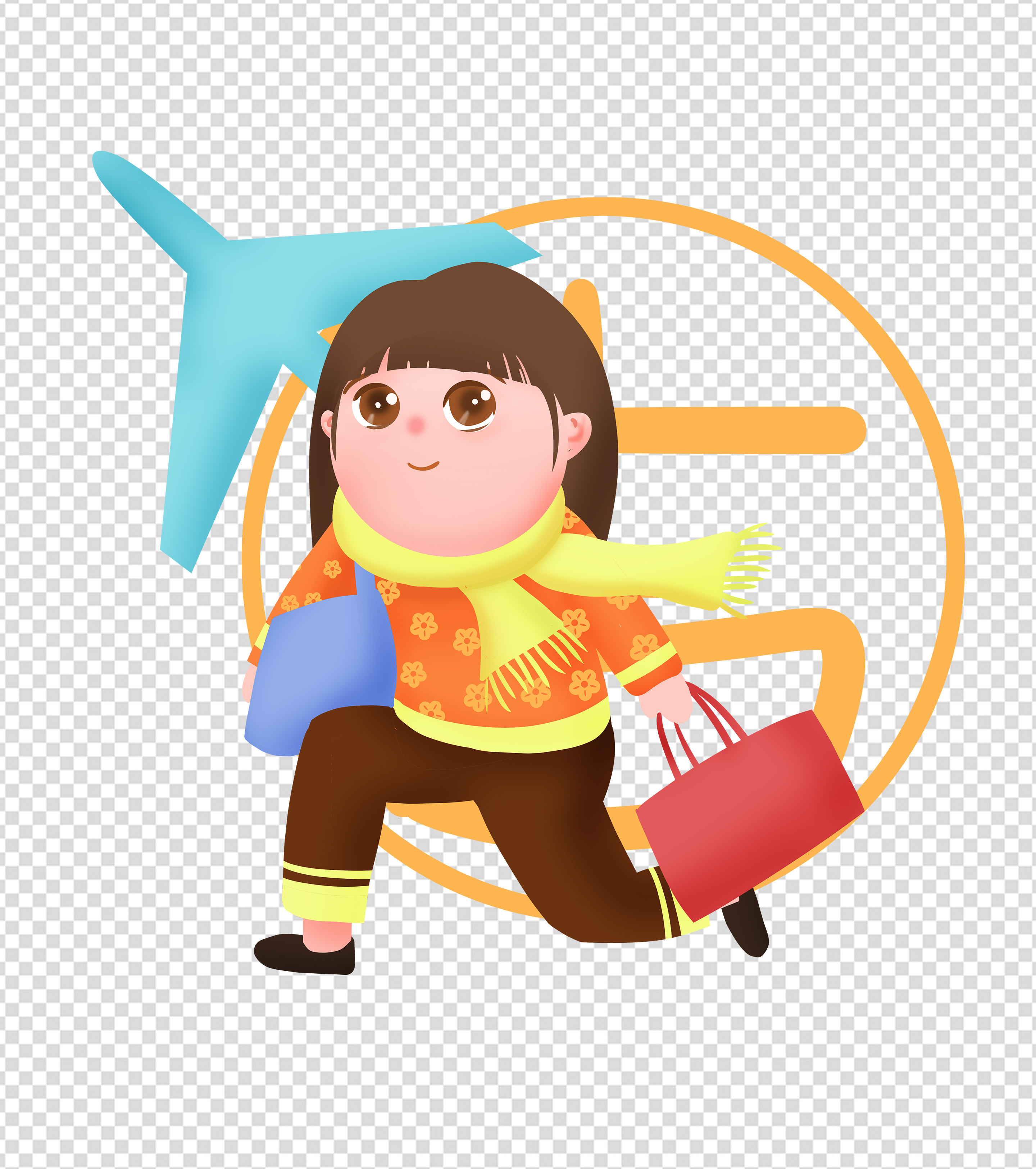 春运赶飞机的小姑娘元素