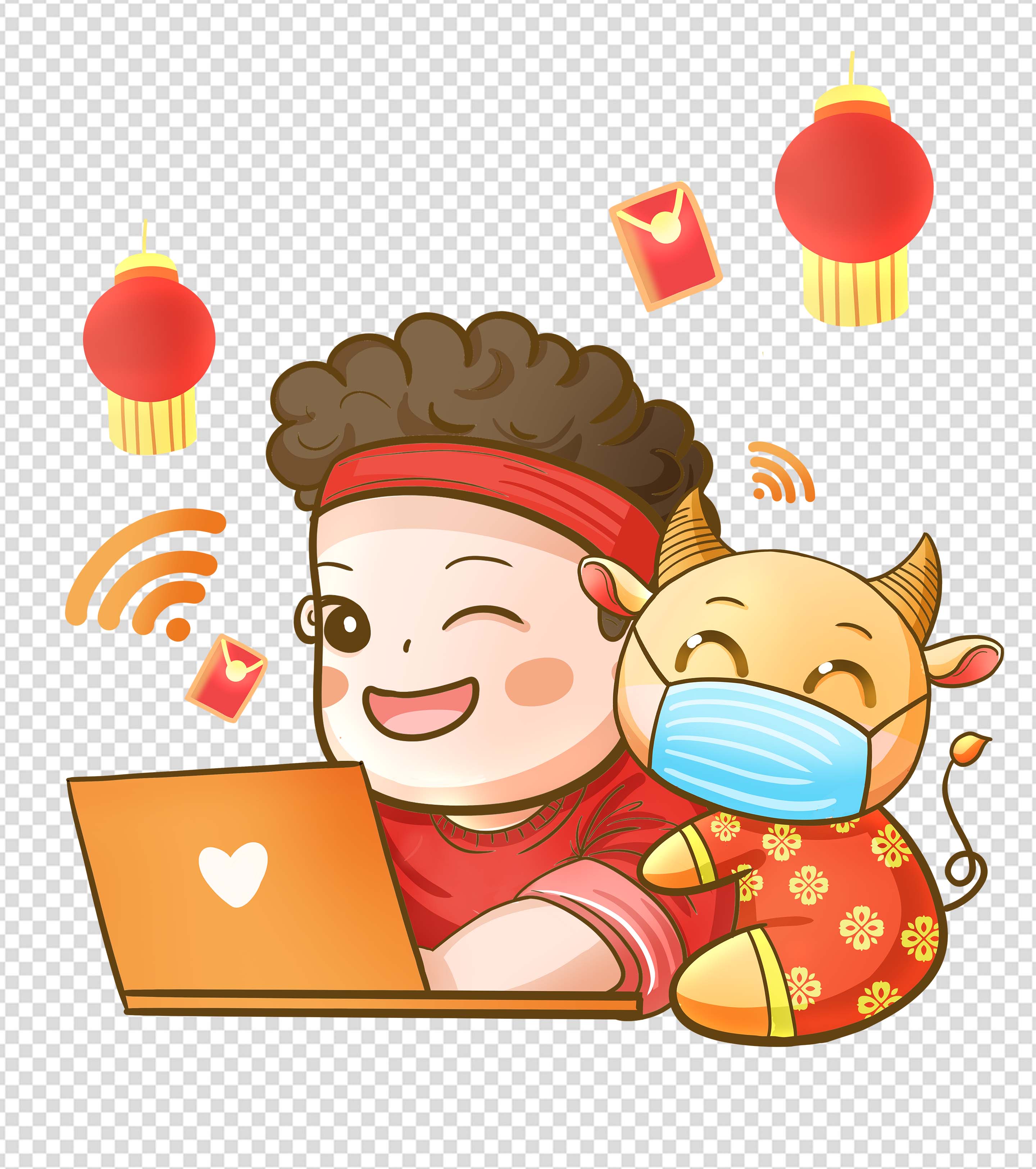 抗疫可爱卡通卷毛小男孩元素系列八