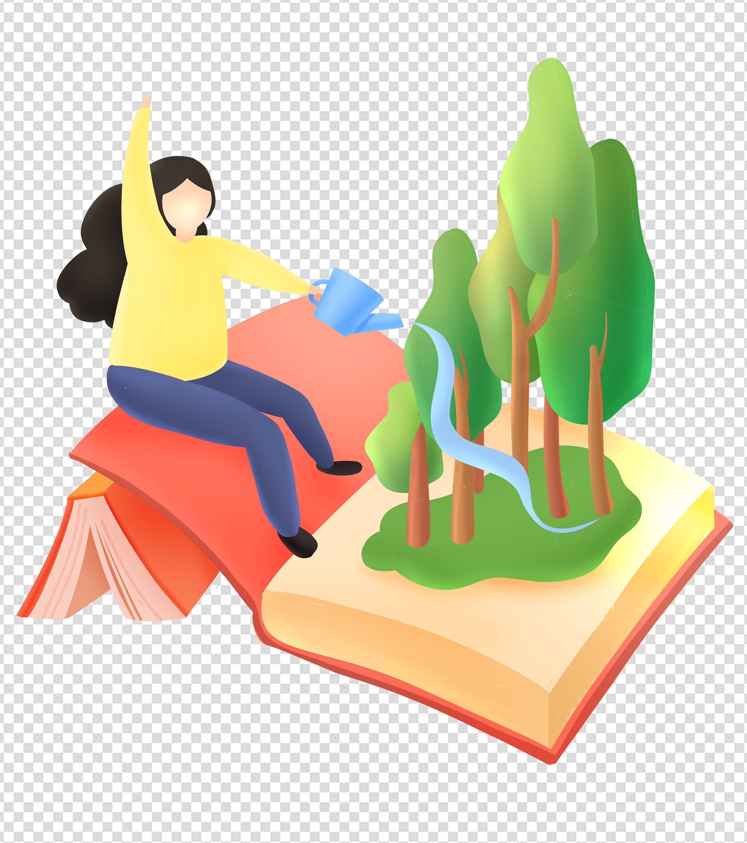 红色书本植树节元素