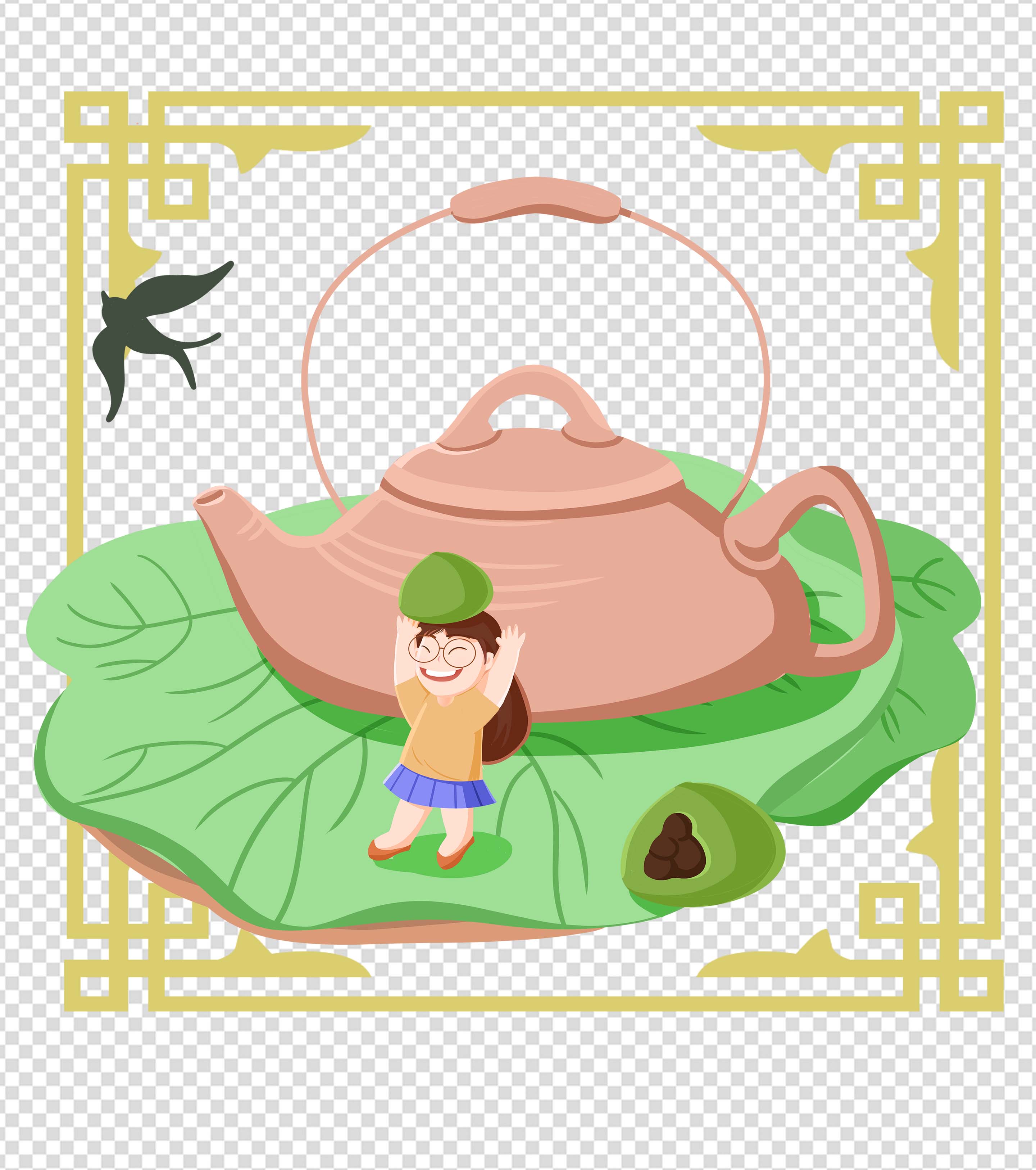 绿色中国风茶壶元素