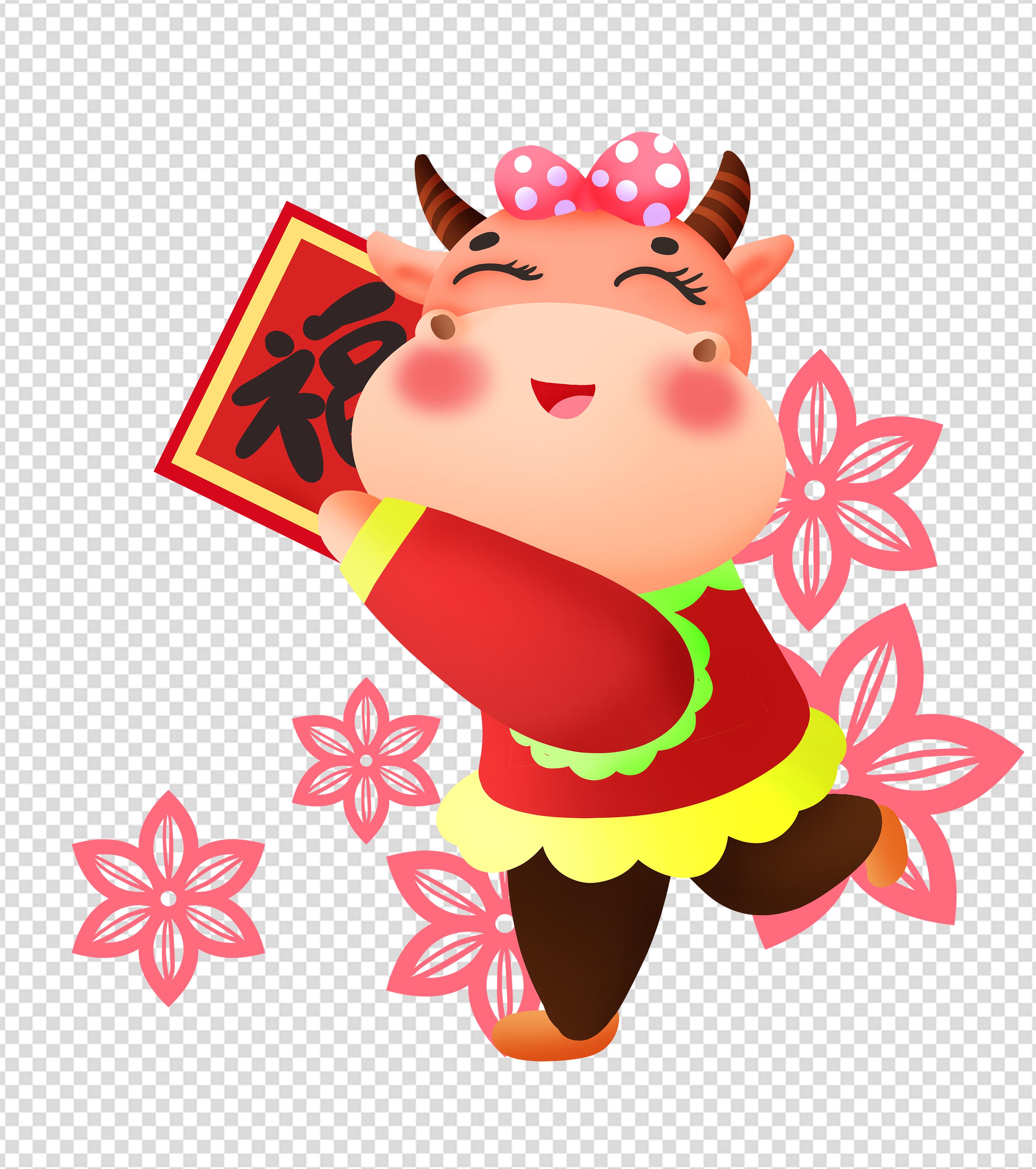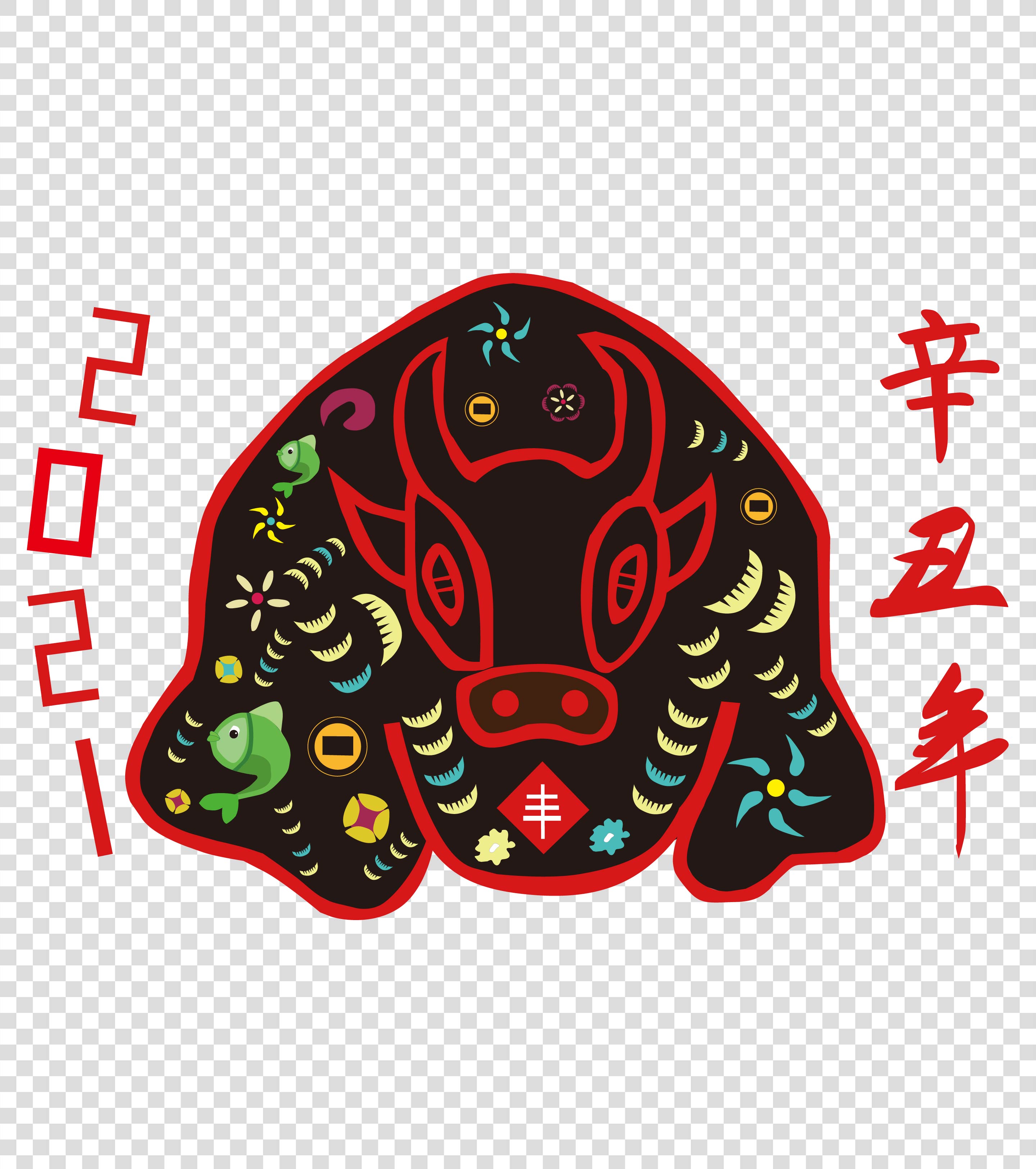 红色牛年送福元素
