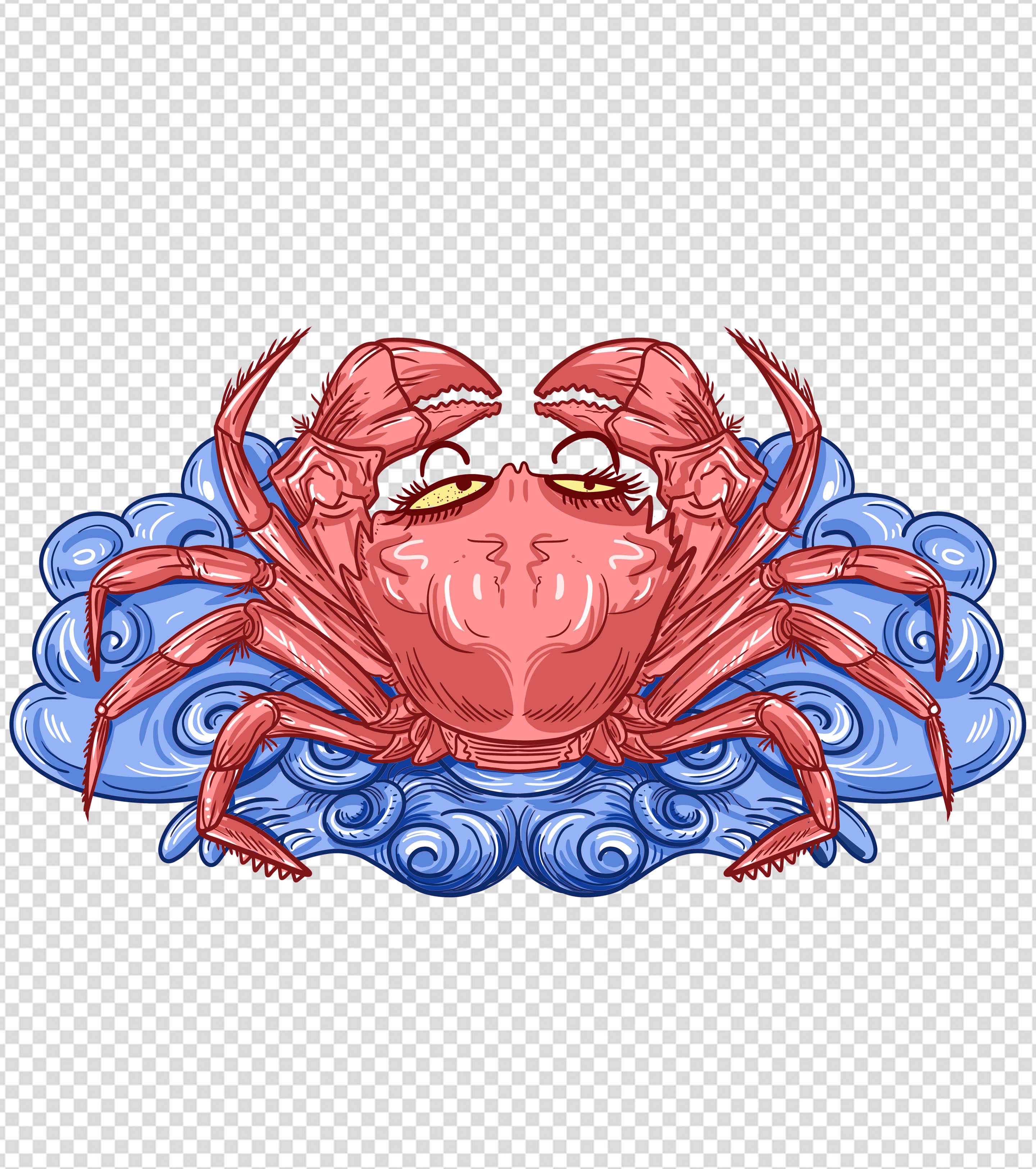 国潮手绘螃蟹元素
