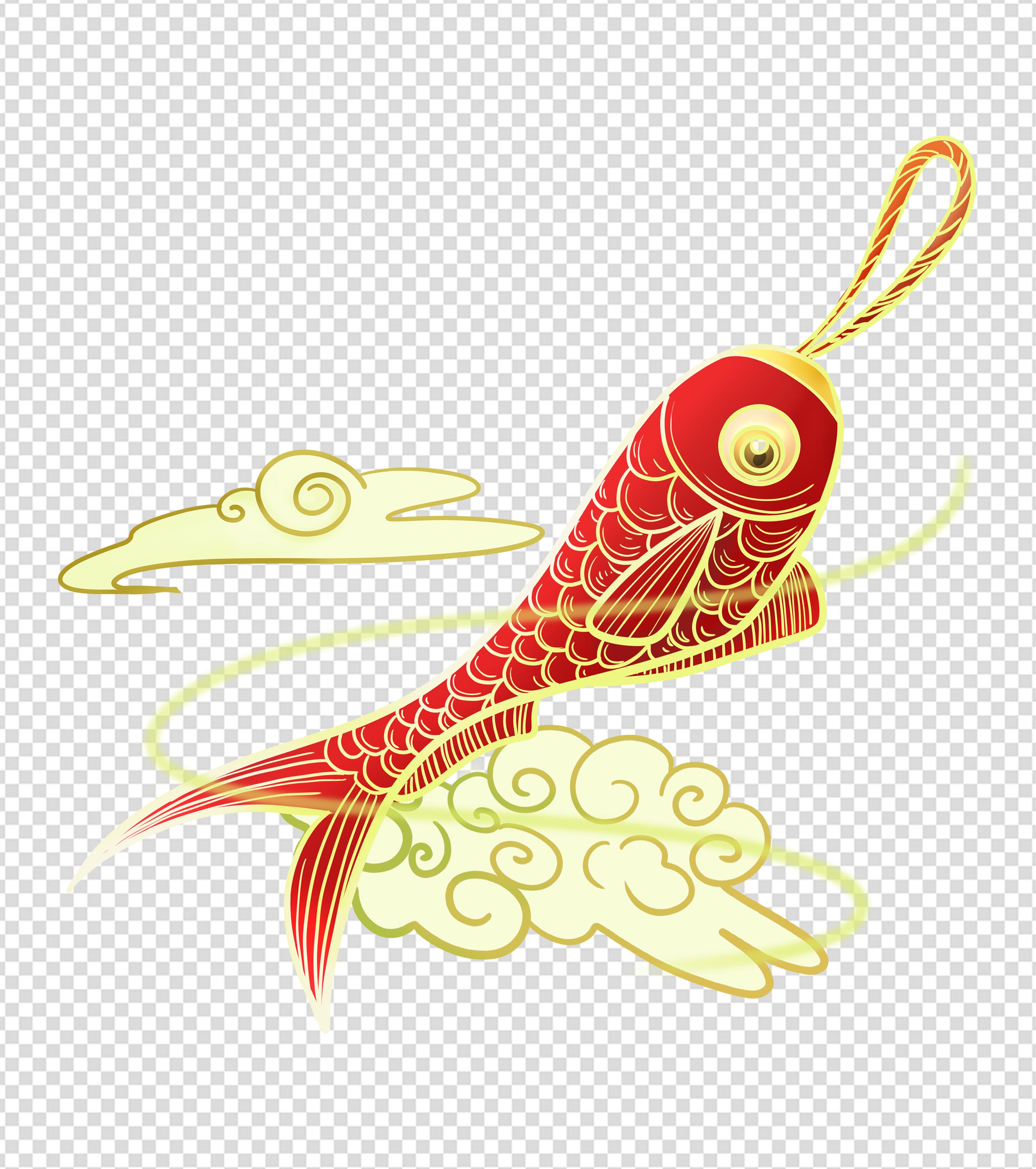 红色喜庆锦鲤挂件元素