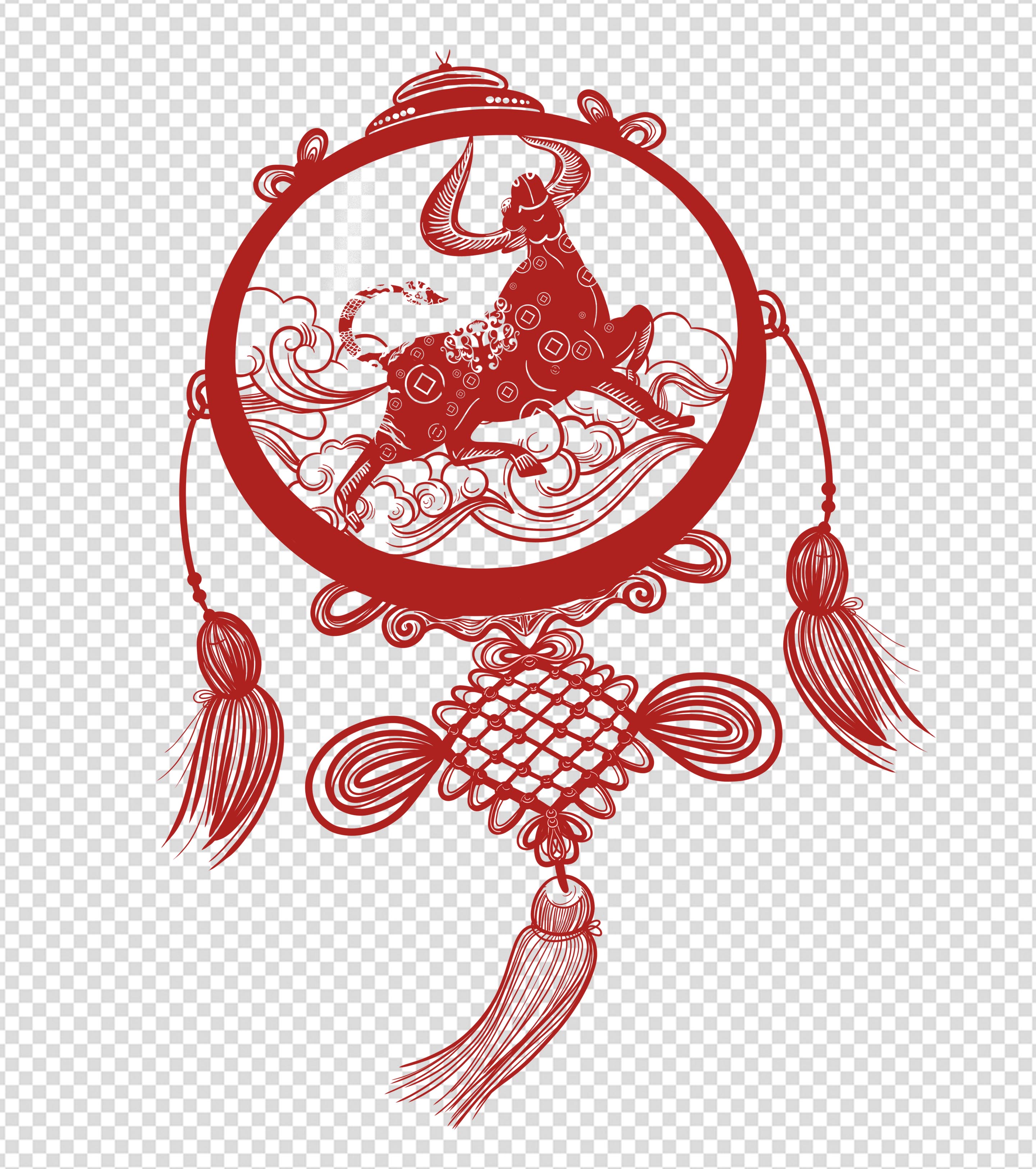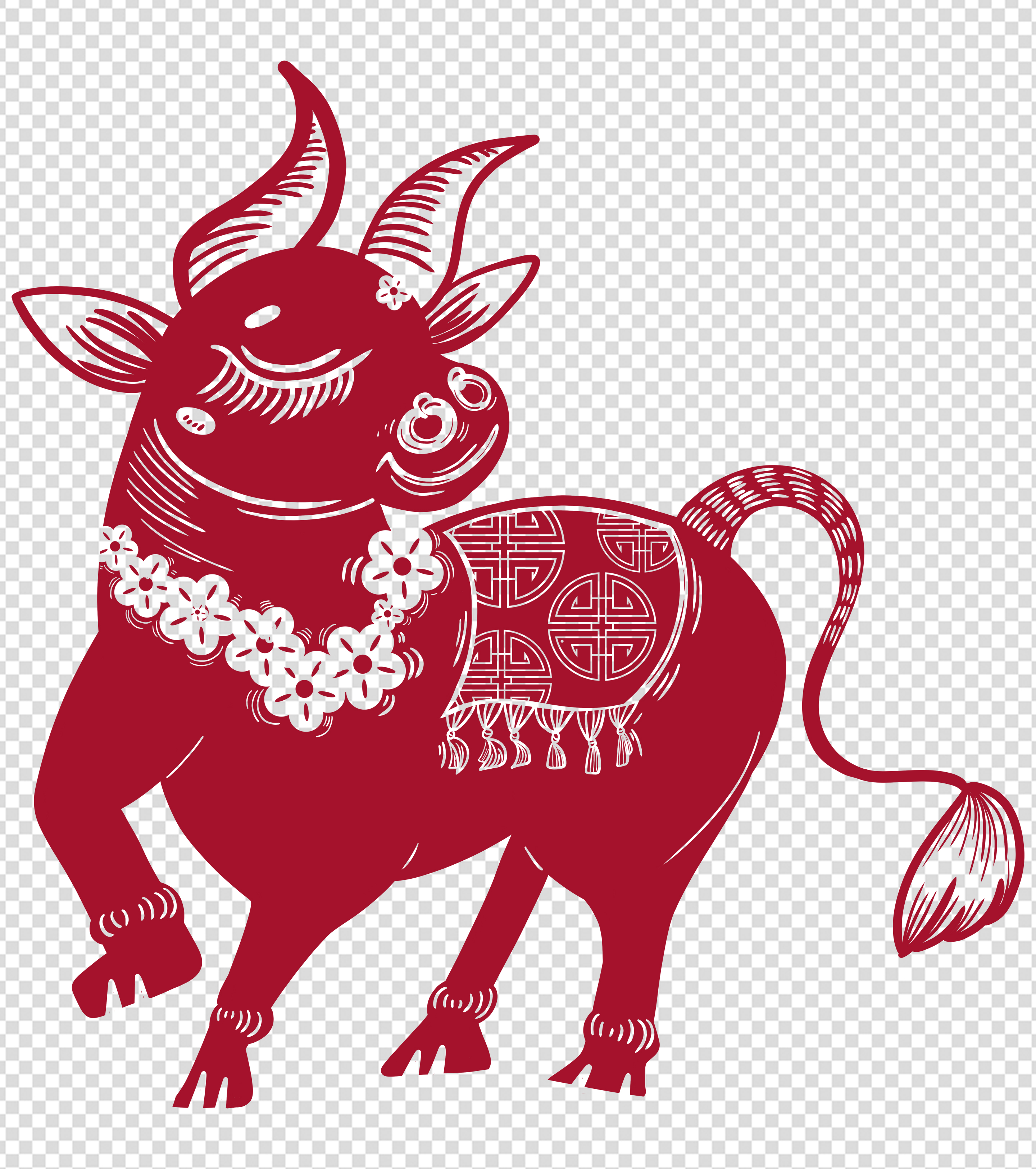 中国风剪纸牛元素