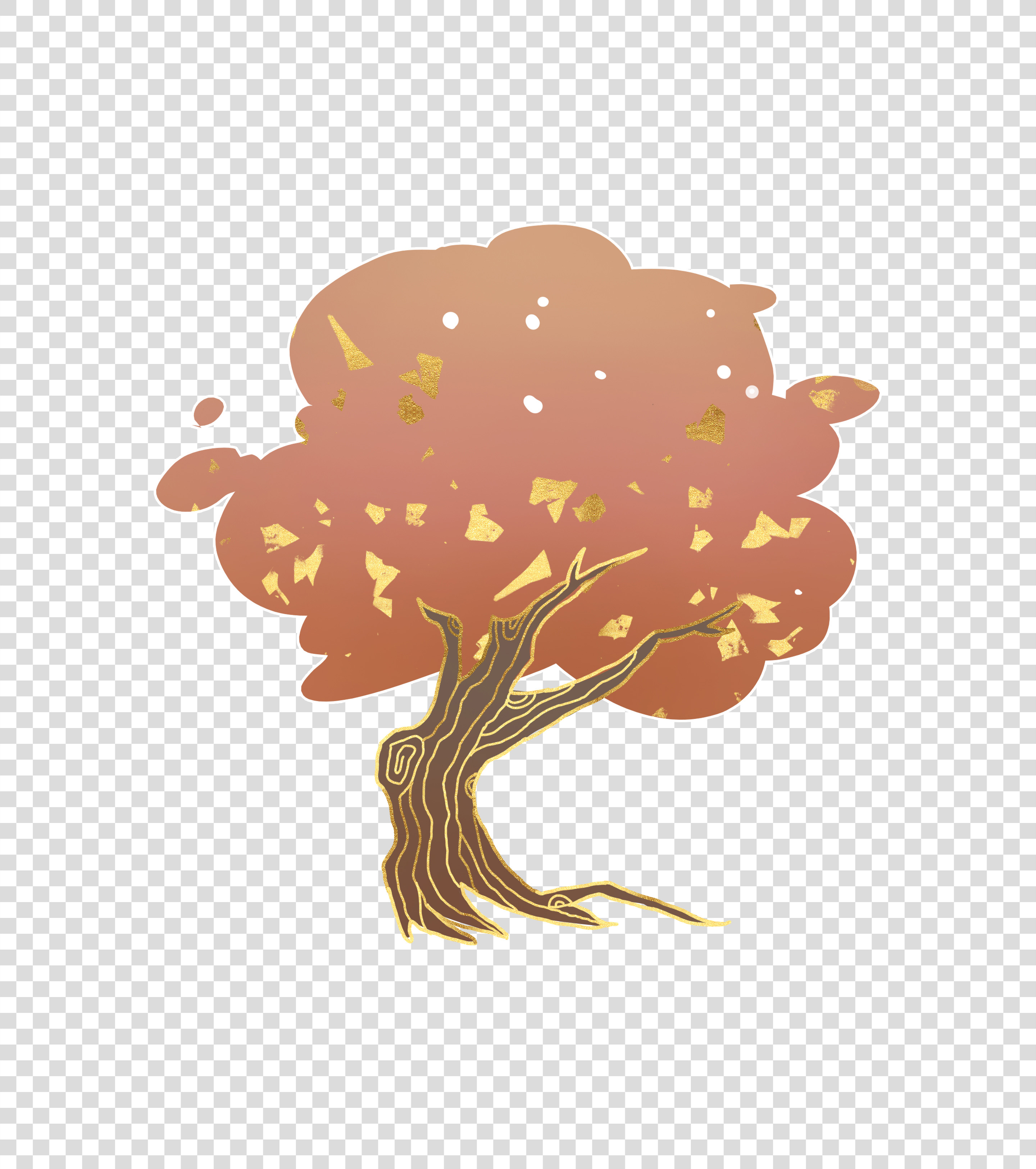 国潮鎏金海棠树元素