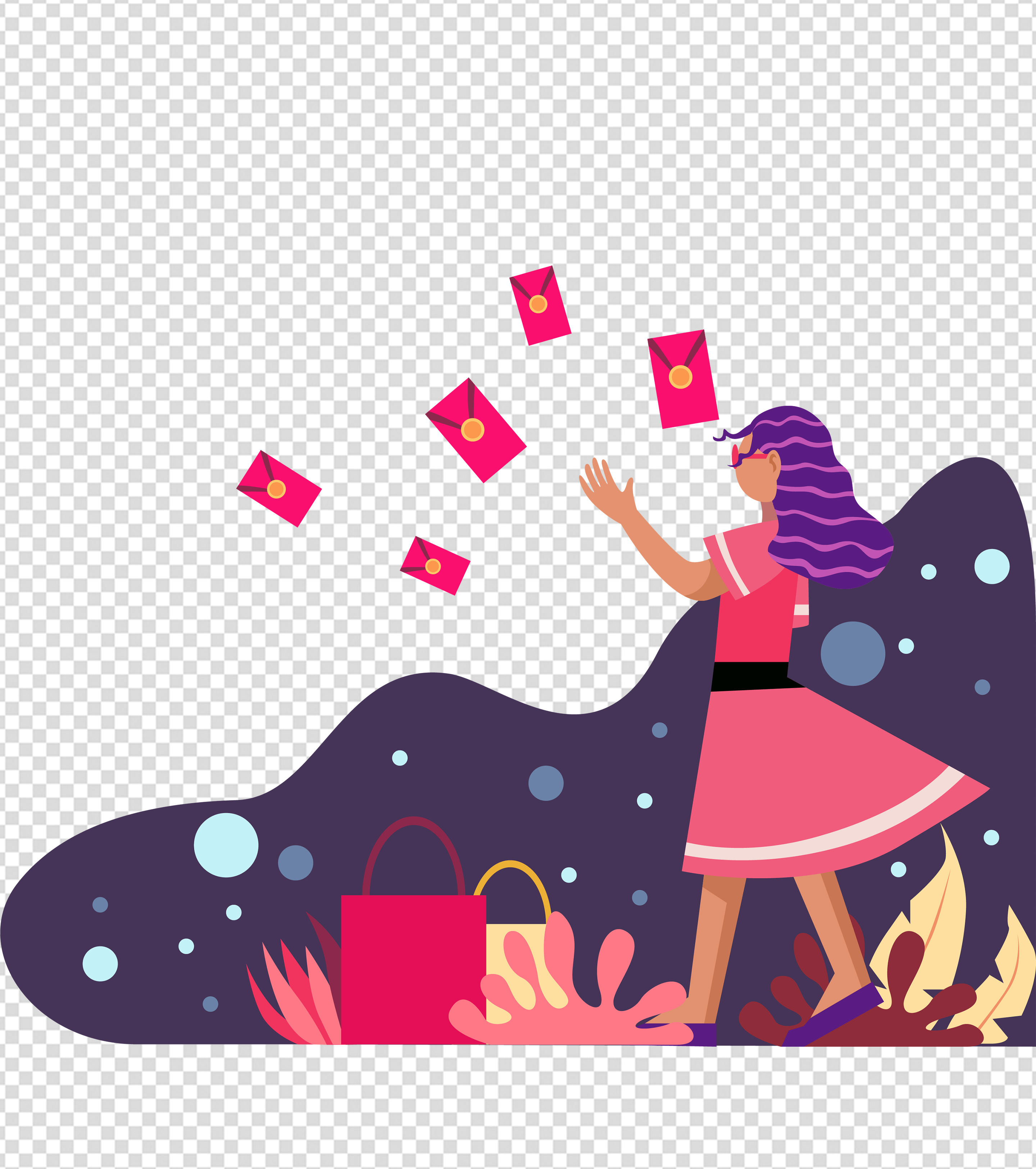 卡通紫色红包女人元素