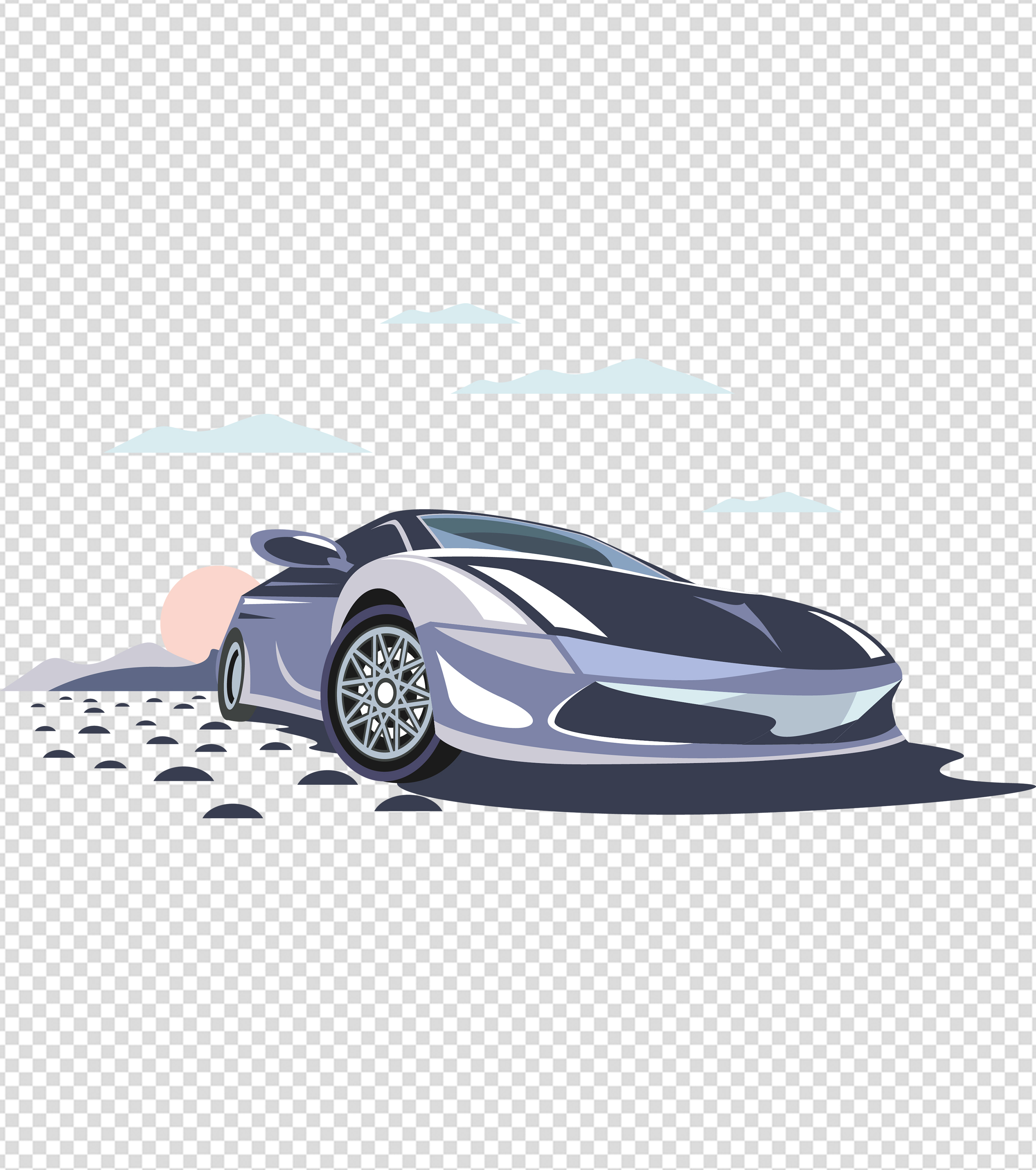 卡通日落紫色汽车元素
