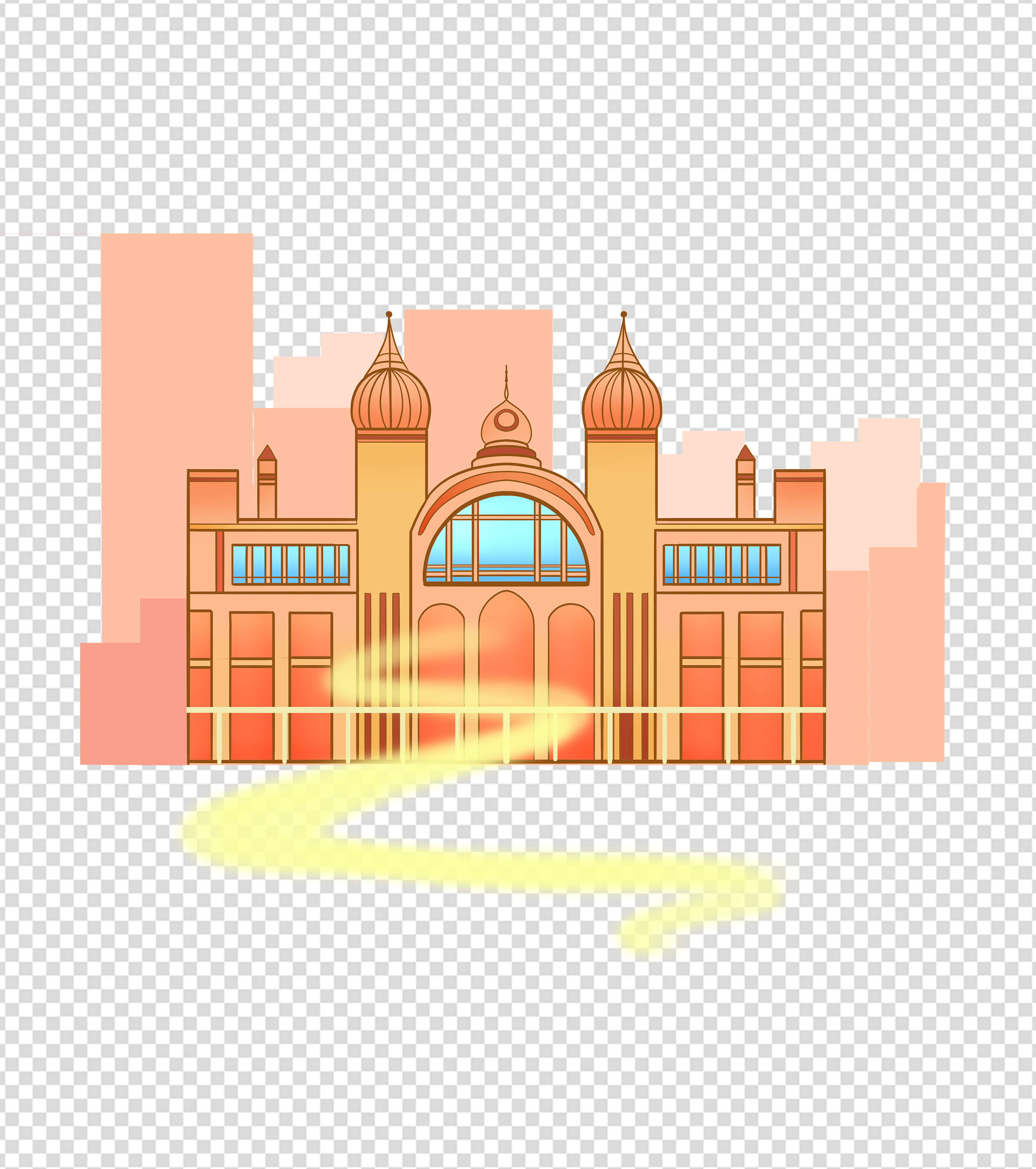 橙色火车站元素