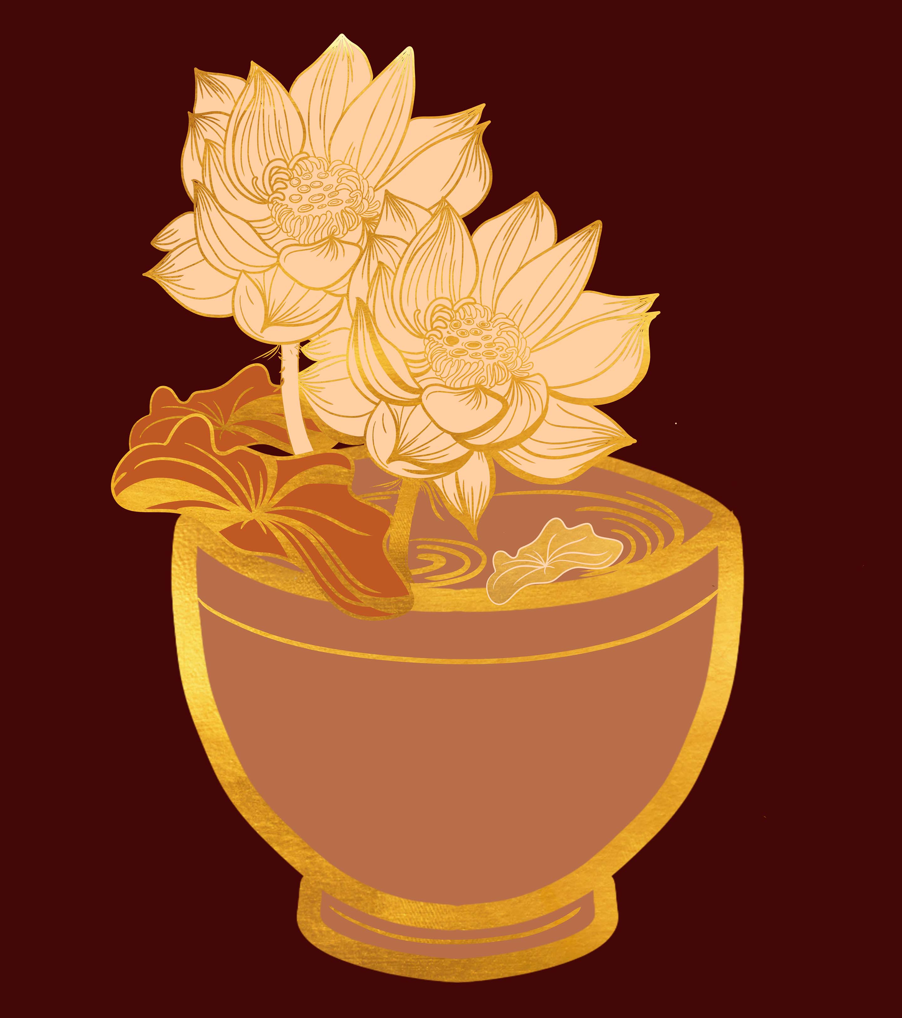 卡通中国风鎏金莲花手绘元素