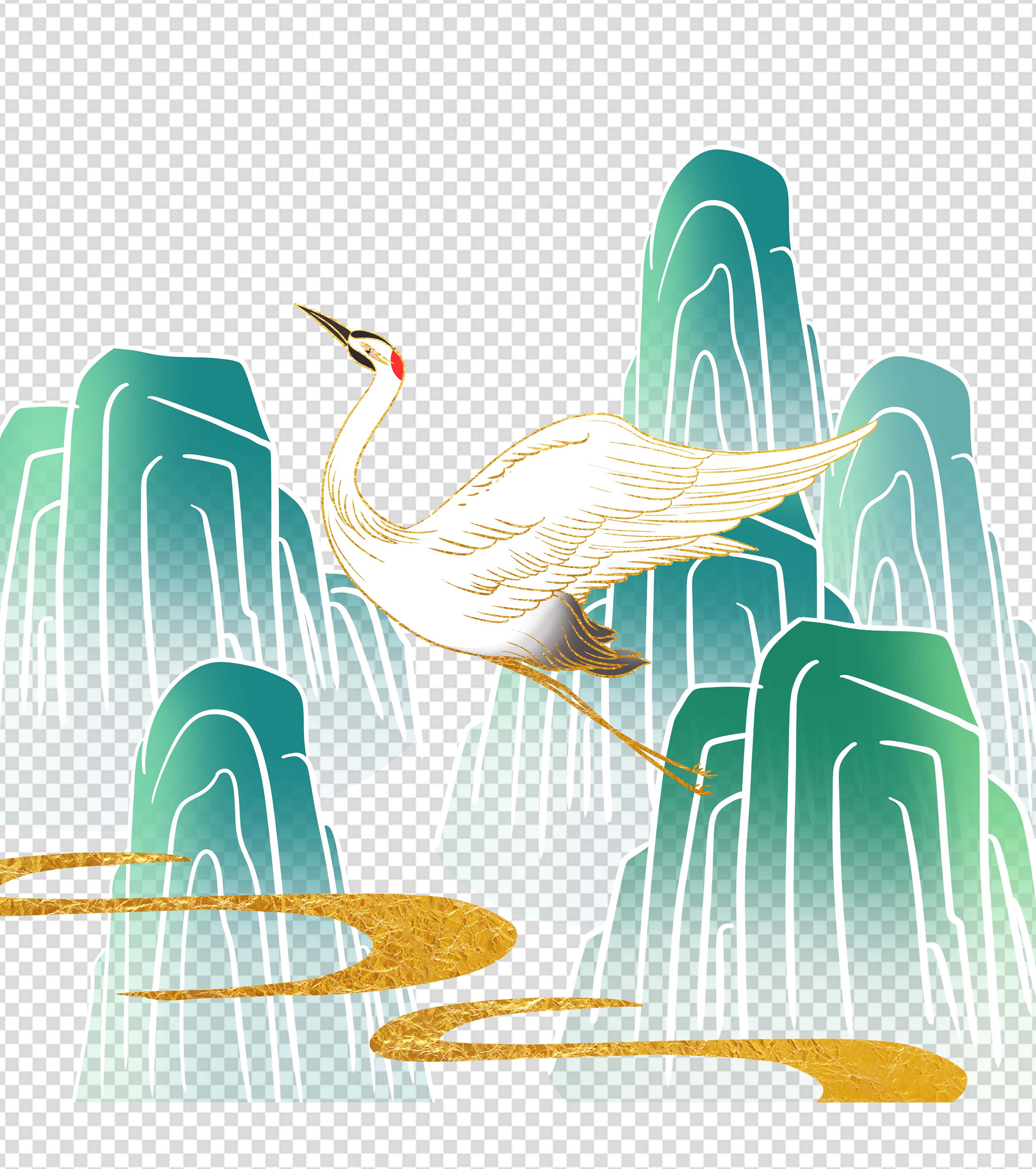卡通中国风鎏金青山手绘元素
