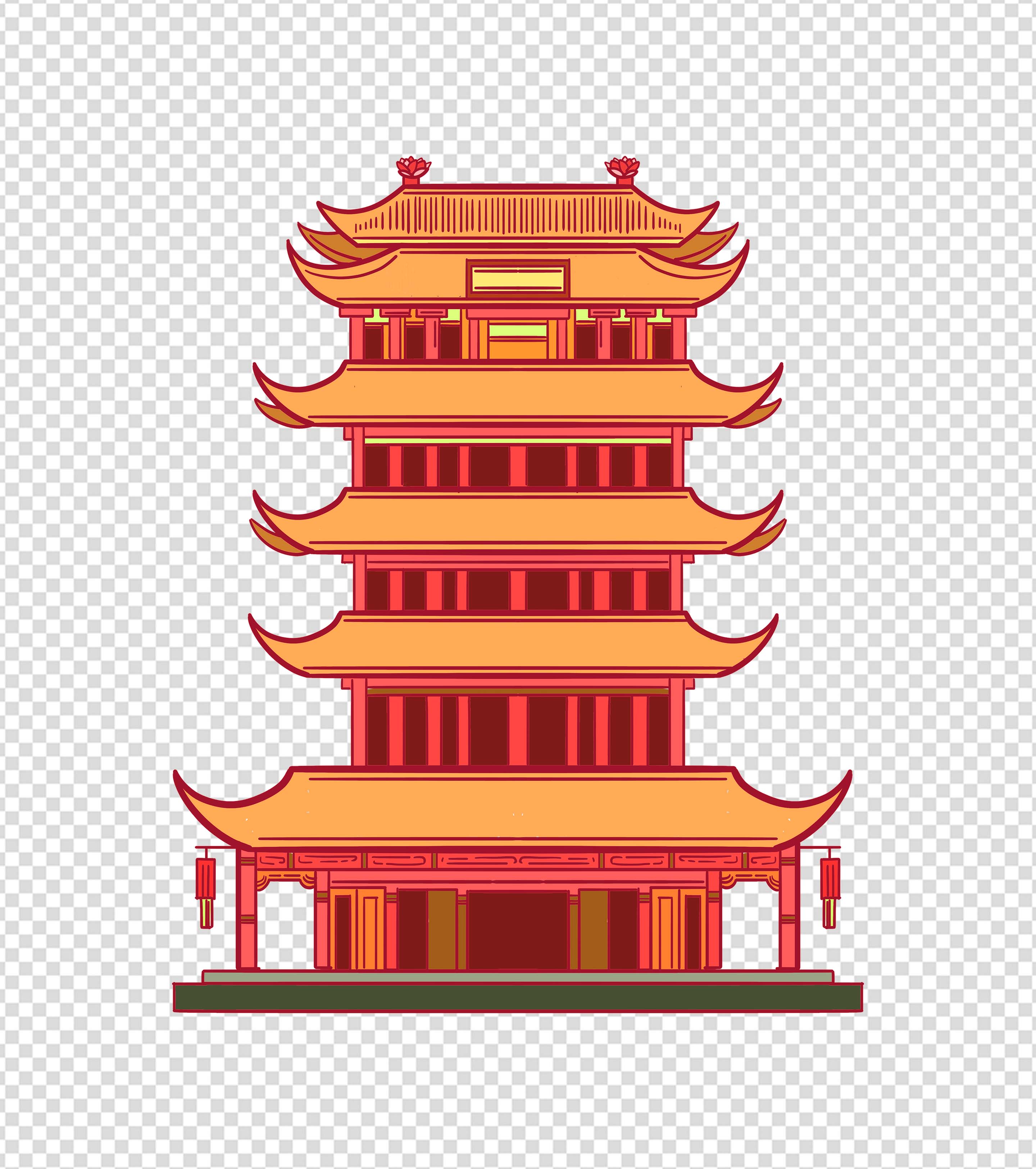 卡通黄色古建筑元素