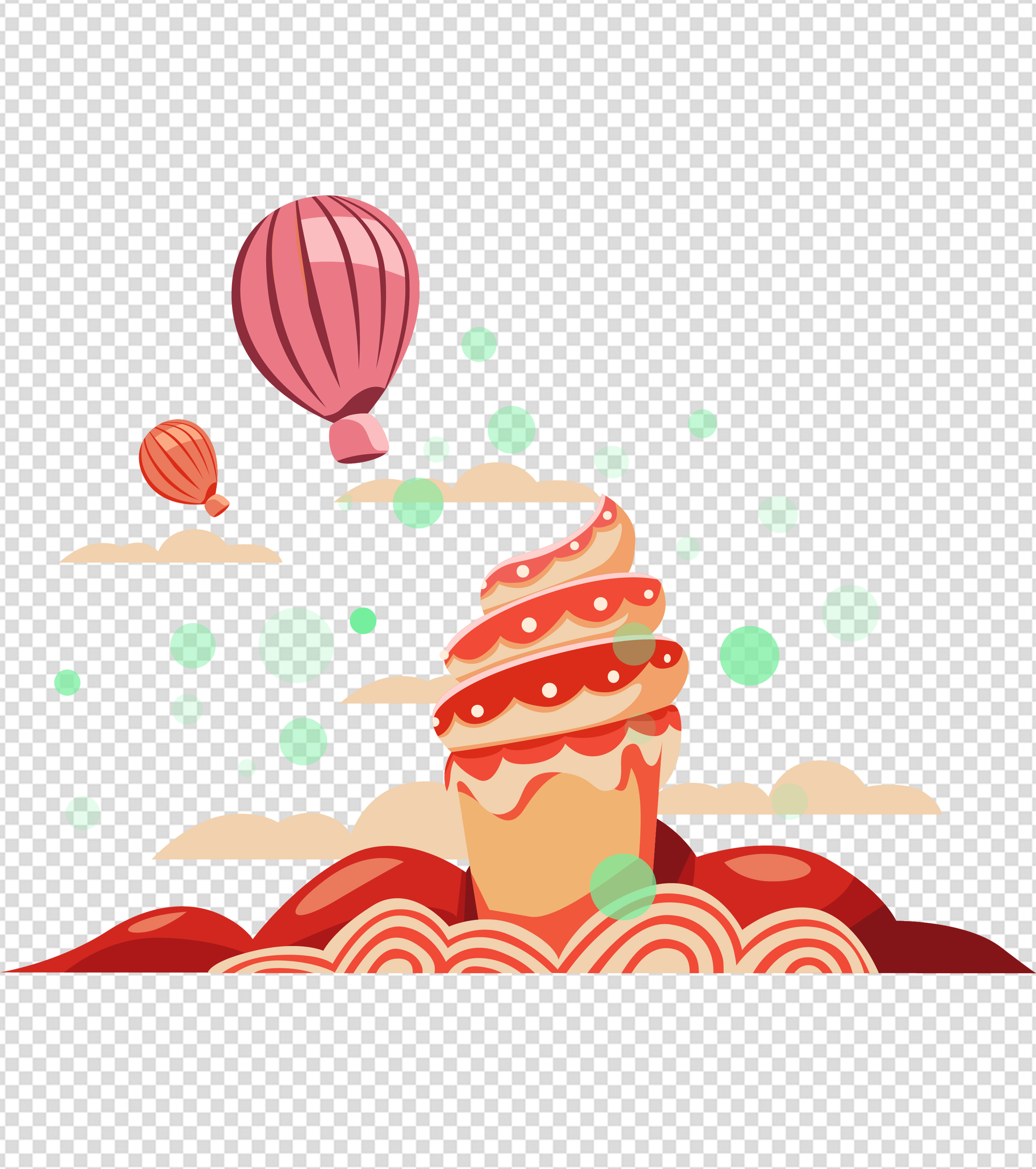 热气球杯子蛋糕手绘生日元素