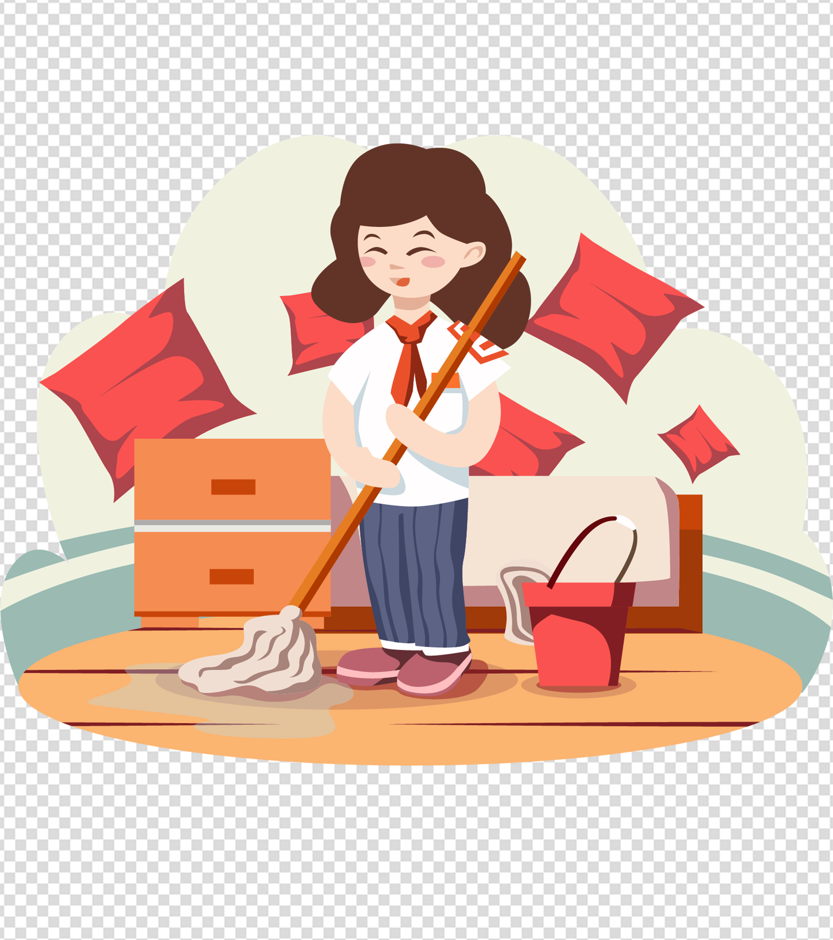 拖地女孩劳动节元素