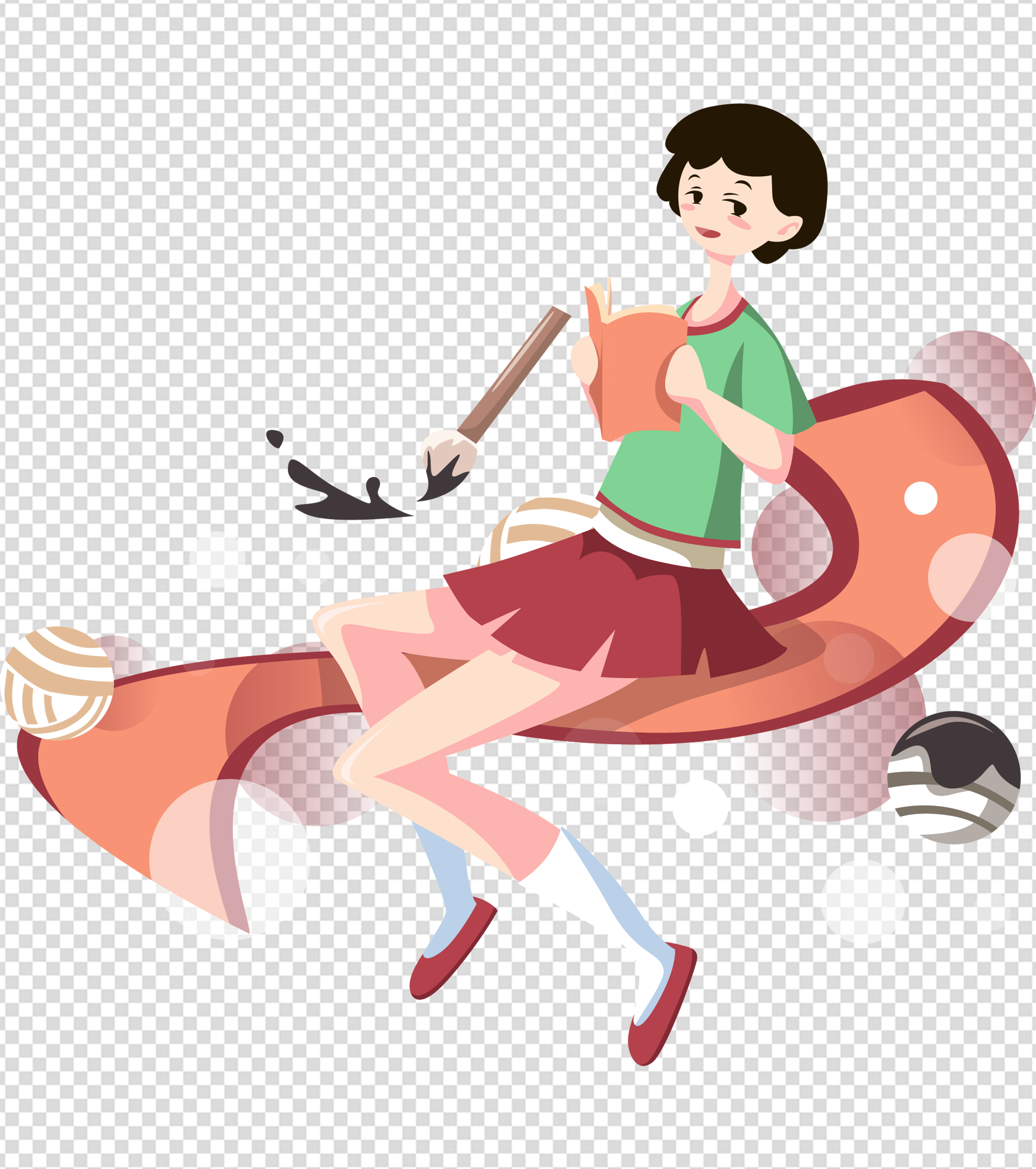短发女孩读书元素