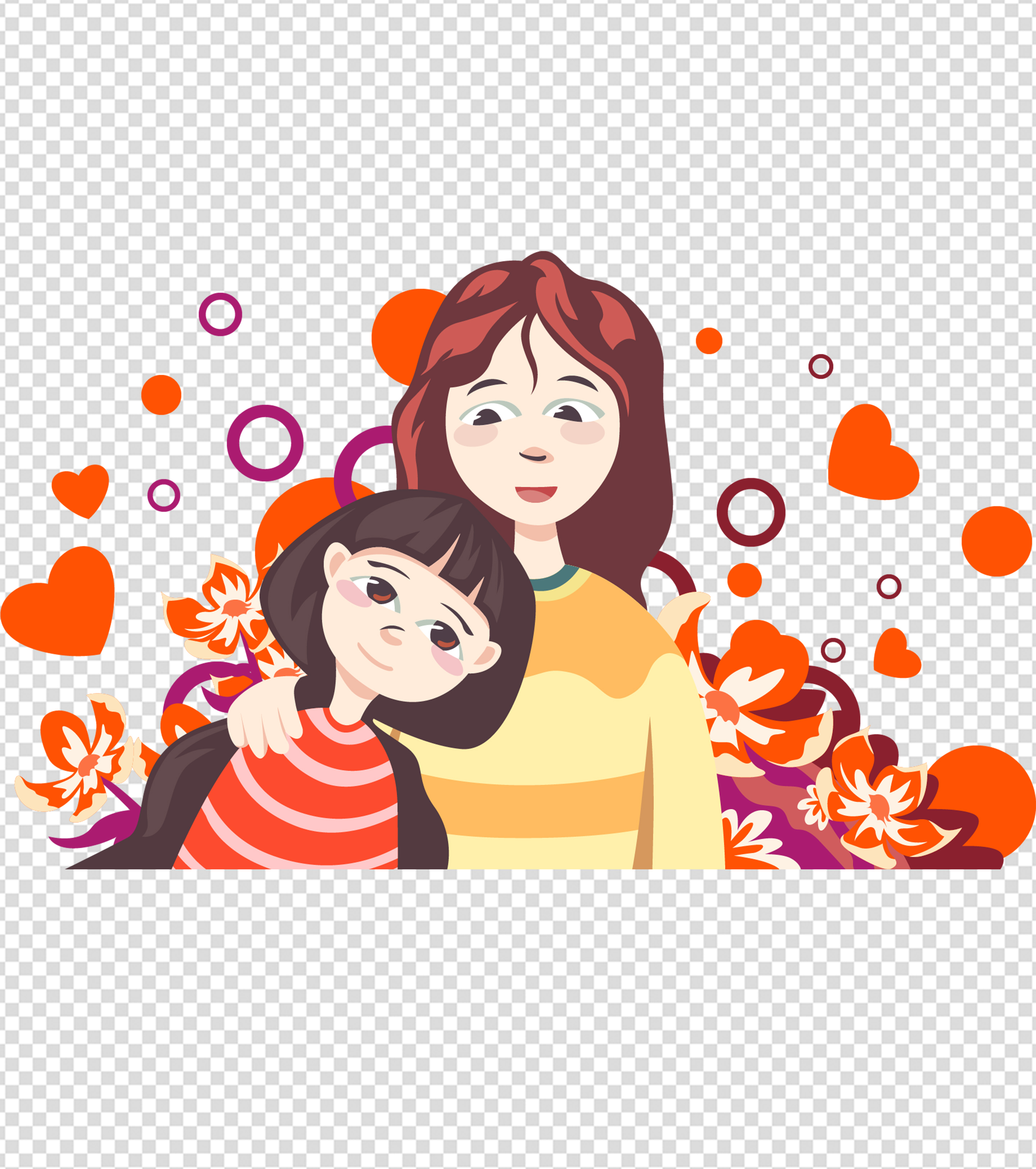 母女依偎母亲节元素