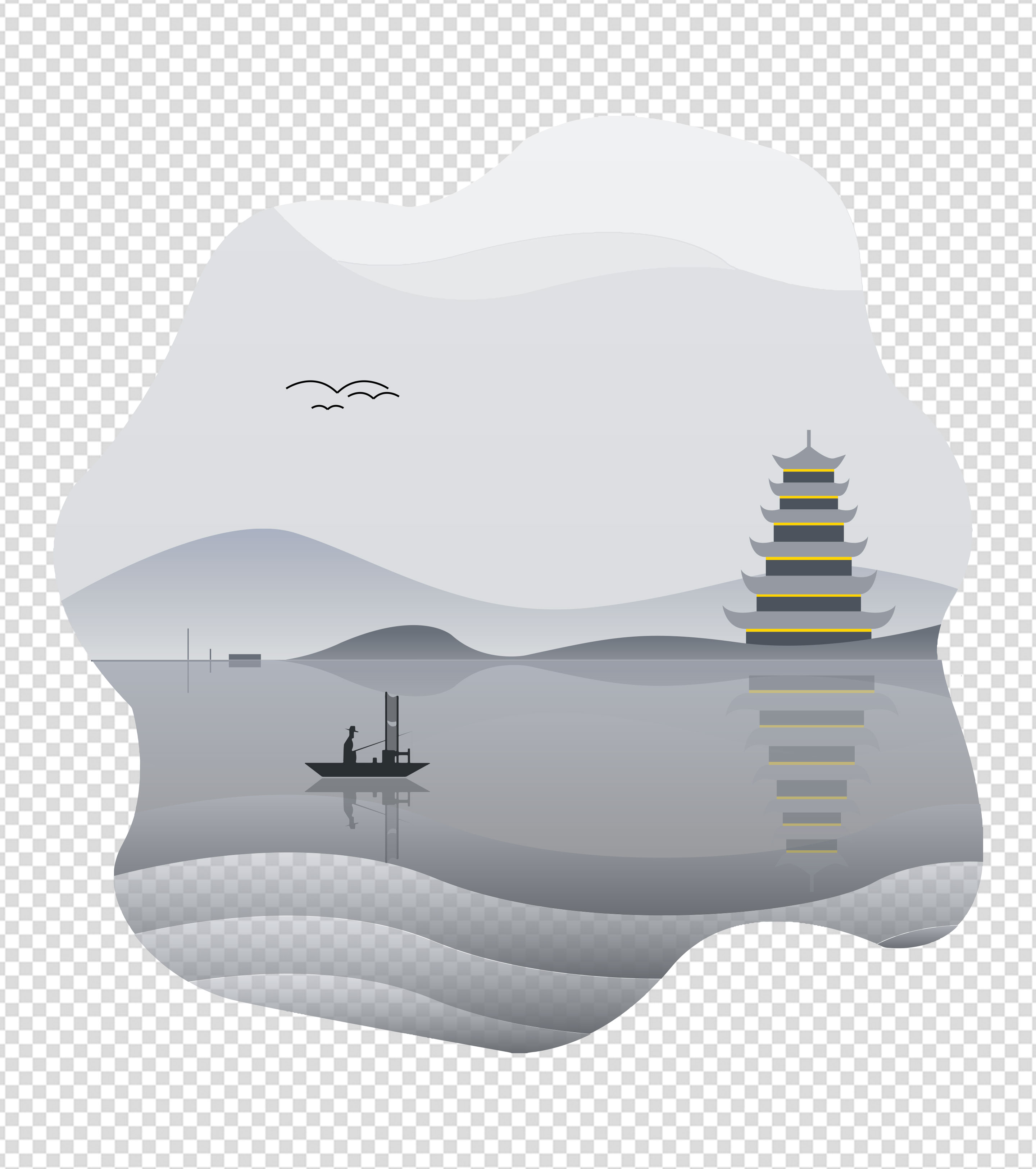 水墨国风山水建筑元素