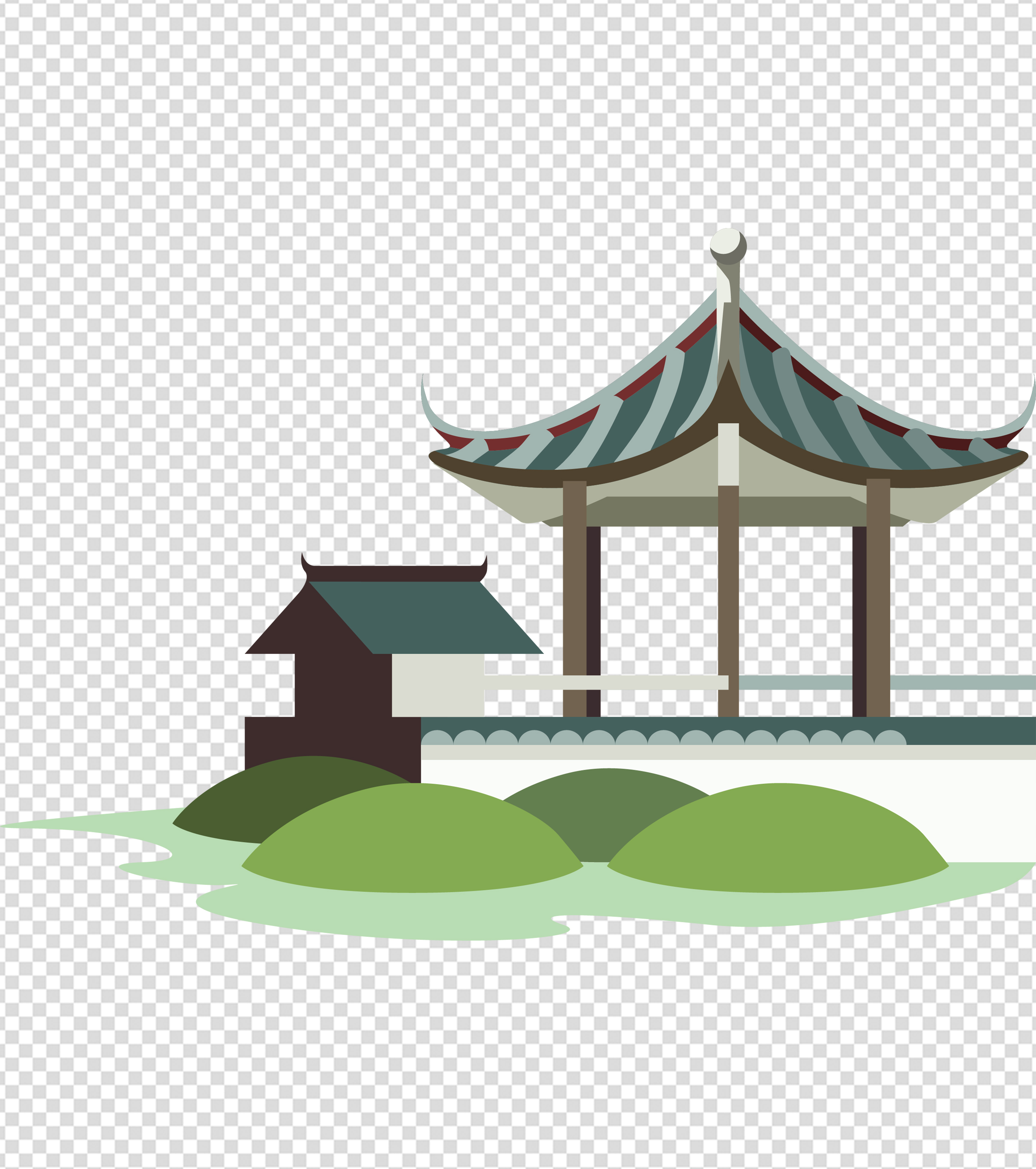手绘古代凉亭建筑元素
