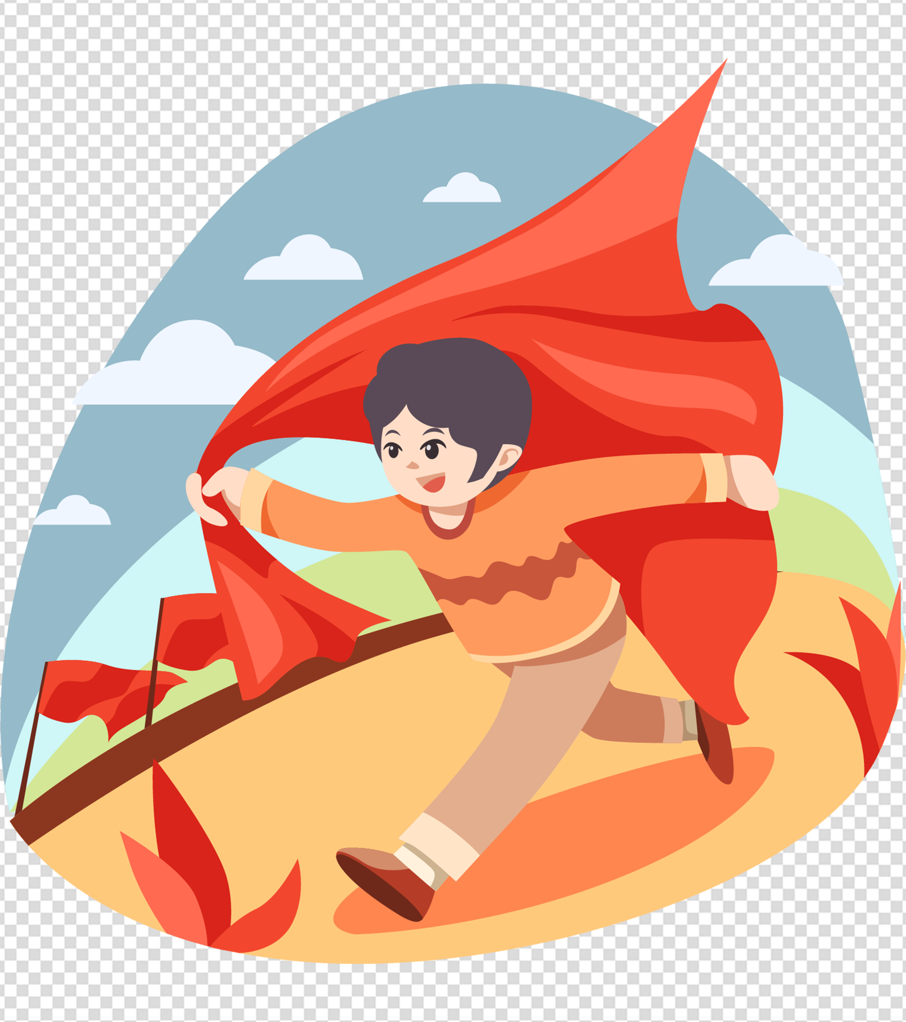 男孩手拿红旗奔跑元素