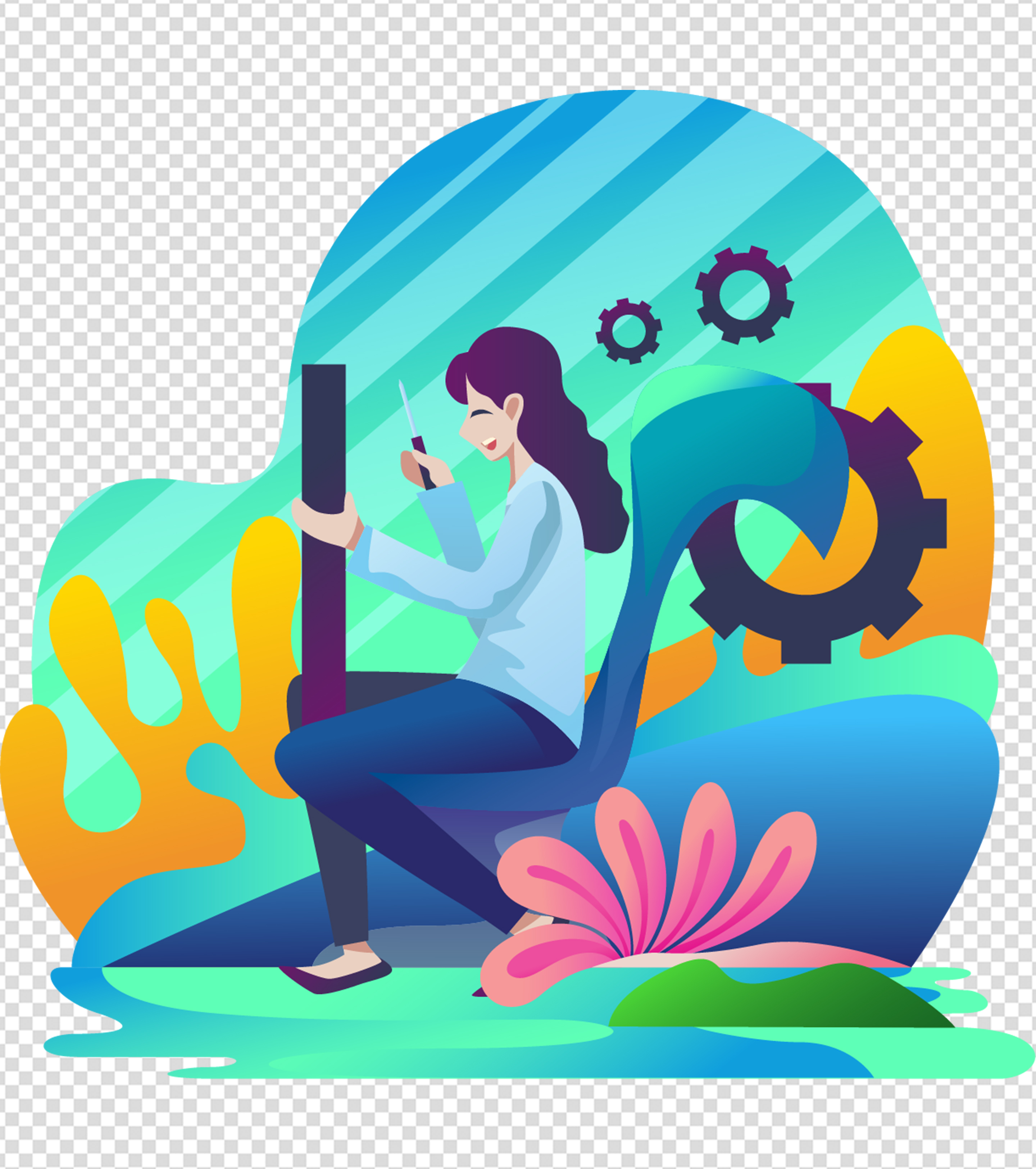 蓝色女孩维修客户维护元素
