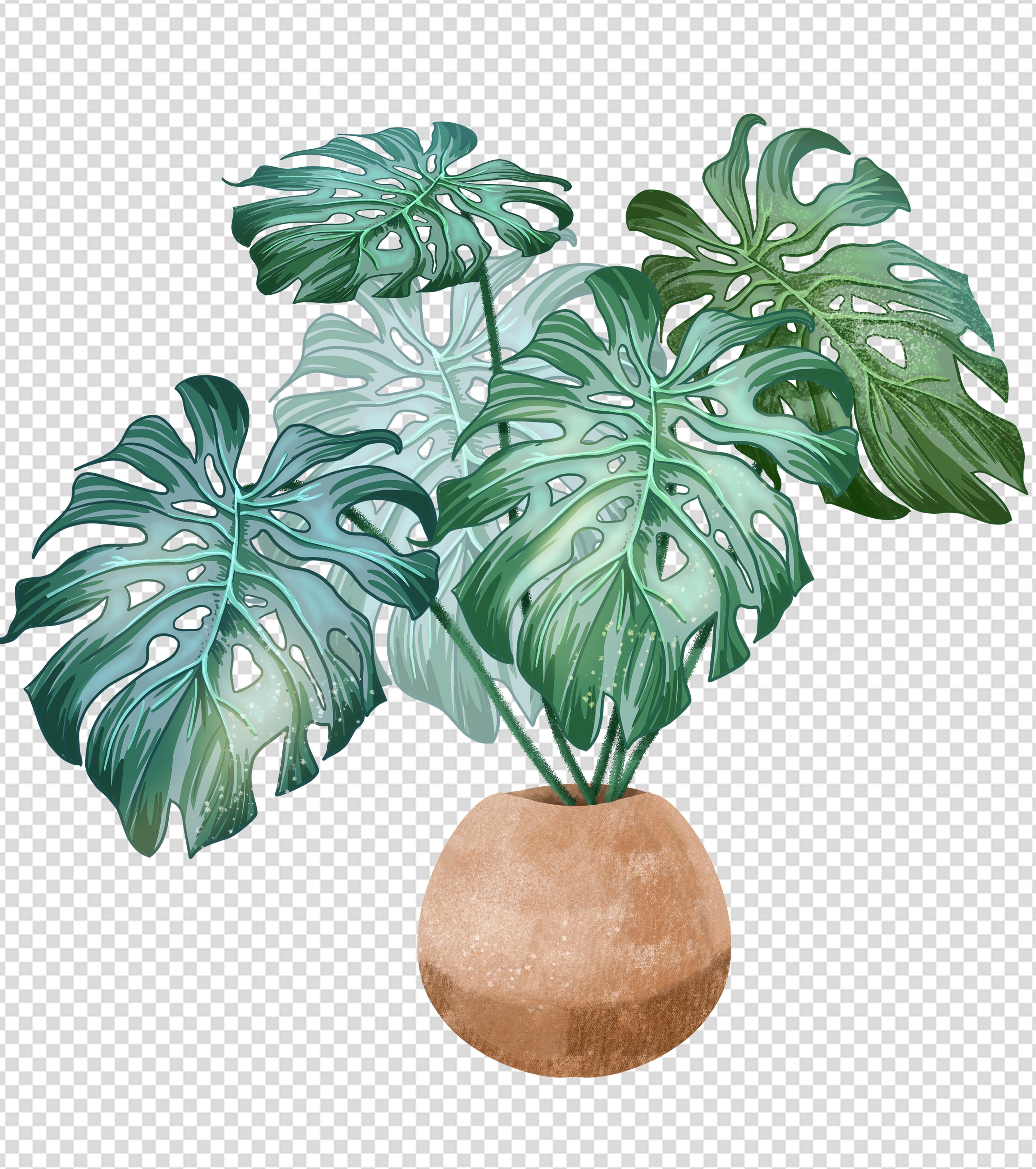 龟背竹绿植盆栽元素