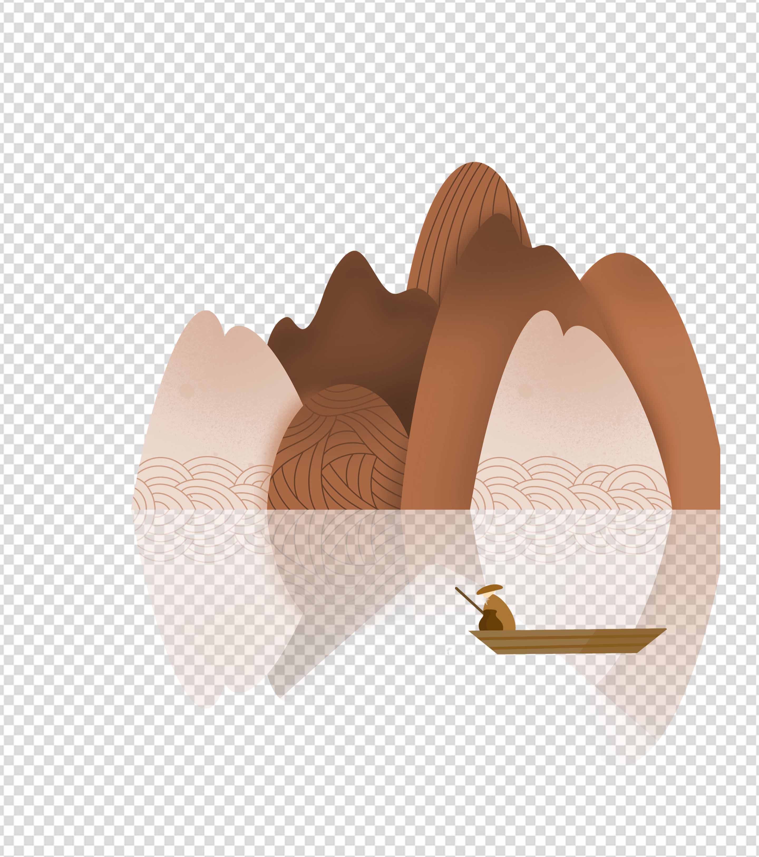 山边钓鱼渔夫手绘元素