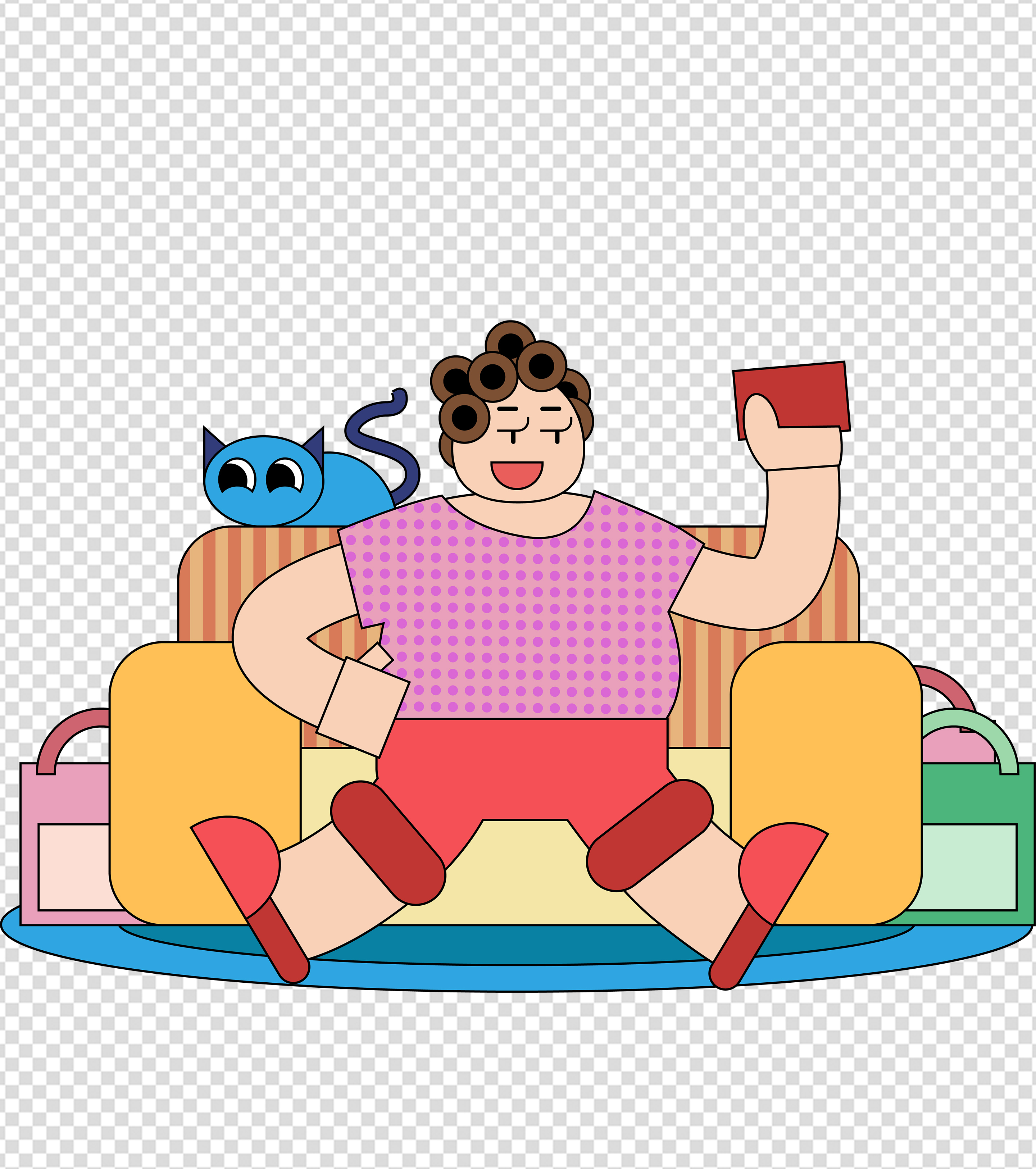 卡通猫咪卷发女人元素