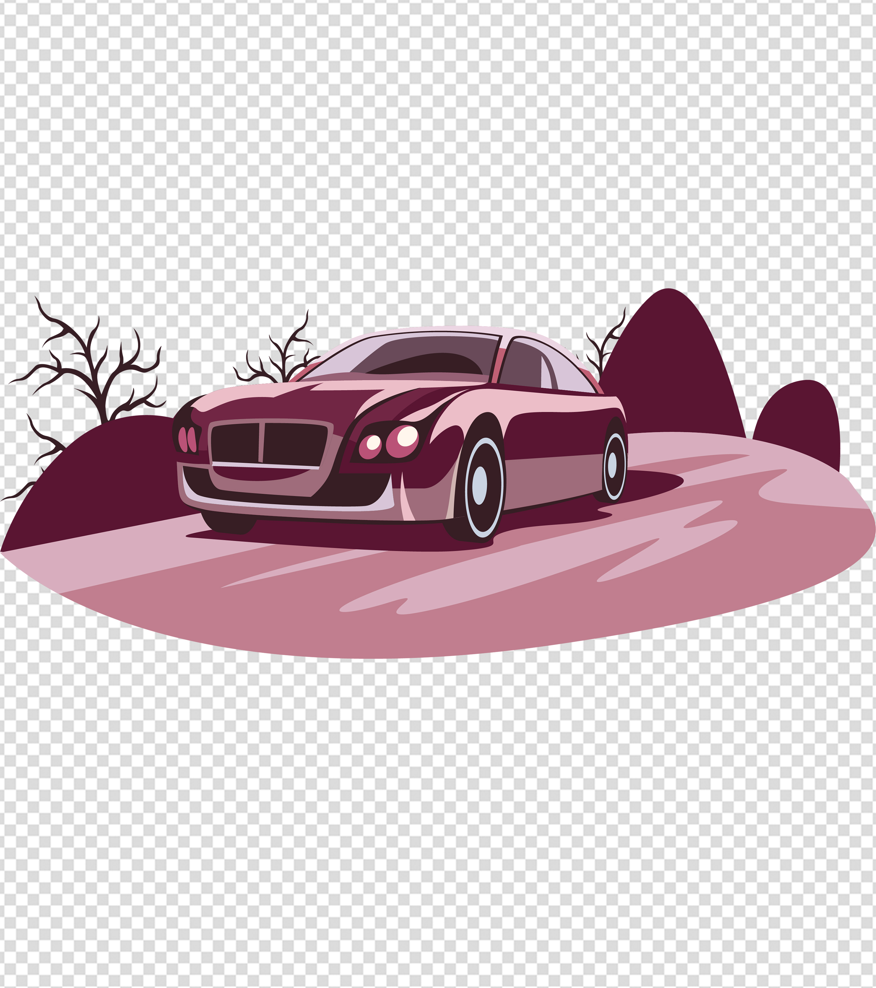 卡通紫色汽车枯木元素