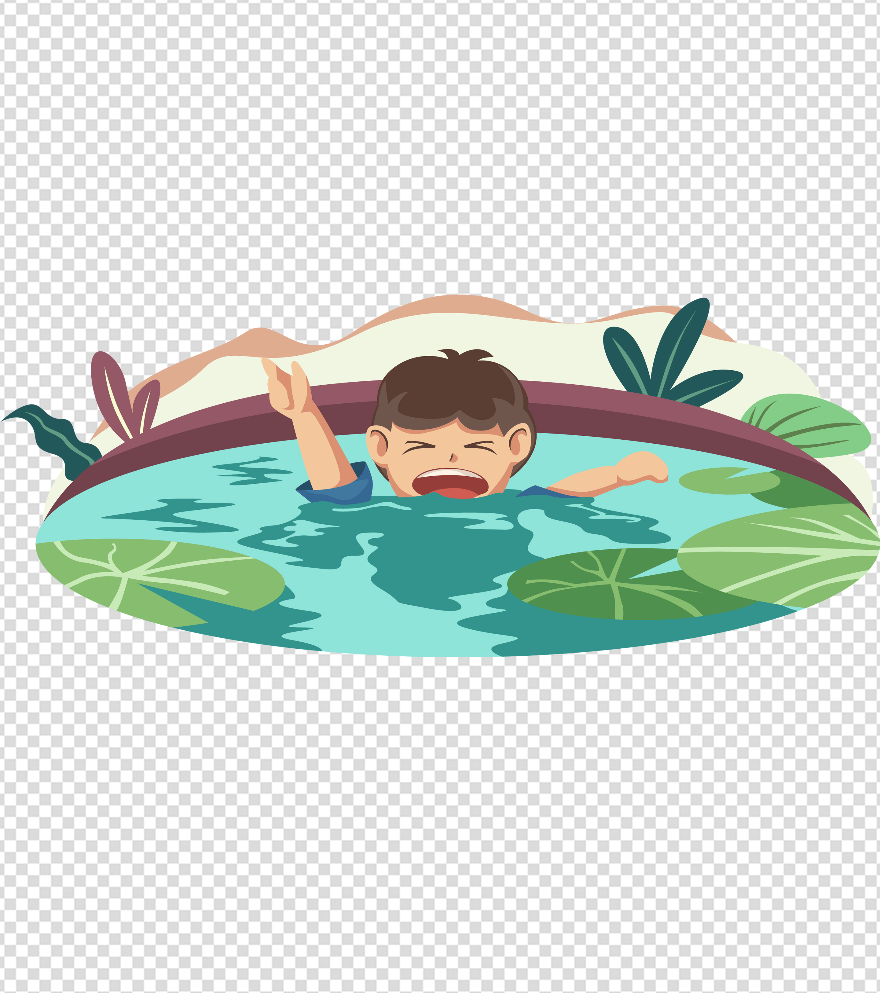 卡通荷塘男孩溺水安全提示元素