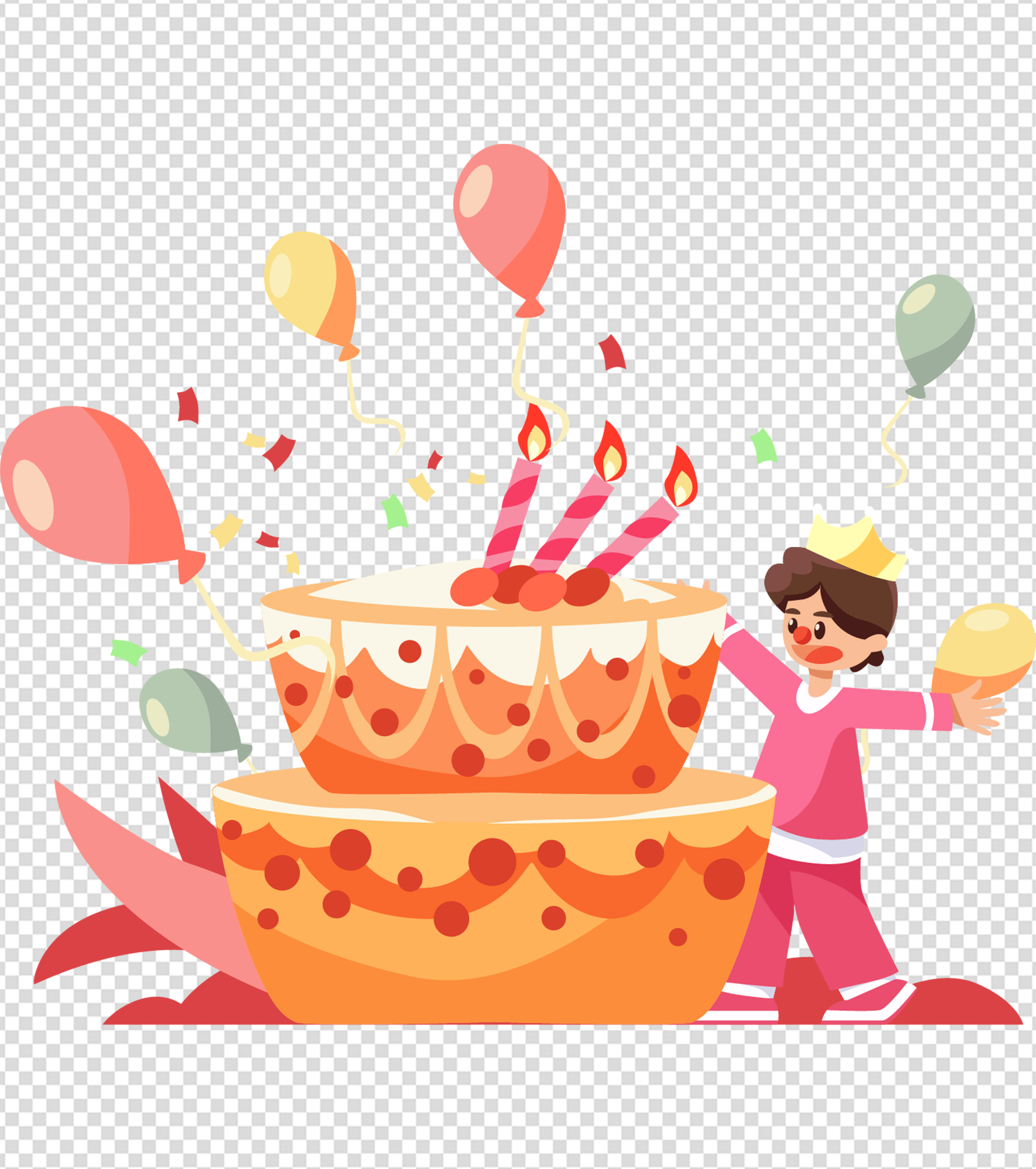 拥抱蛋糕的男孩生日元素