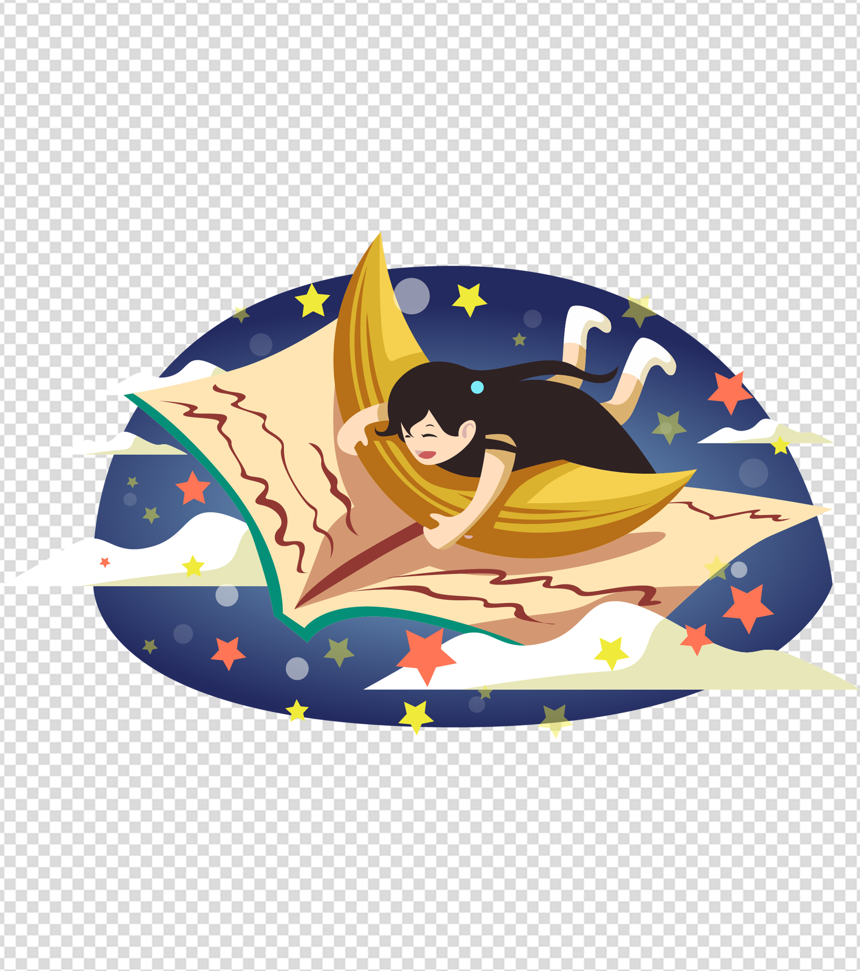 卡通月亮女孩读书日元素