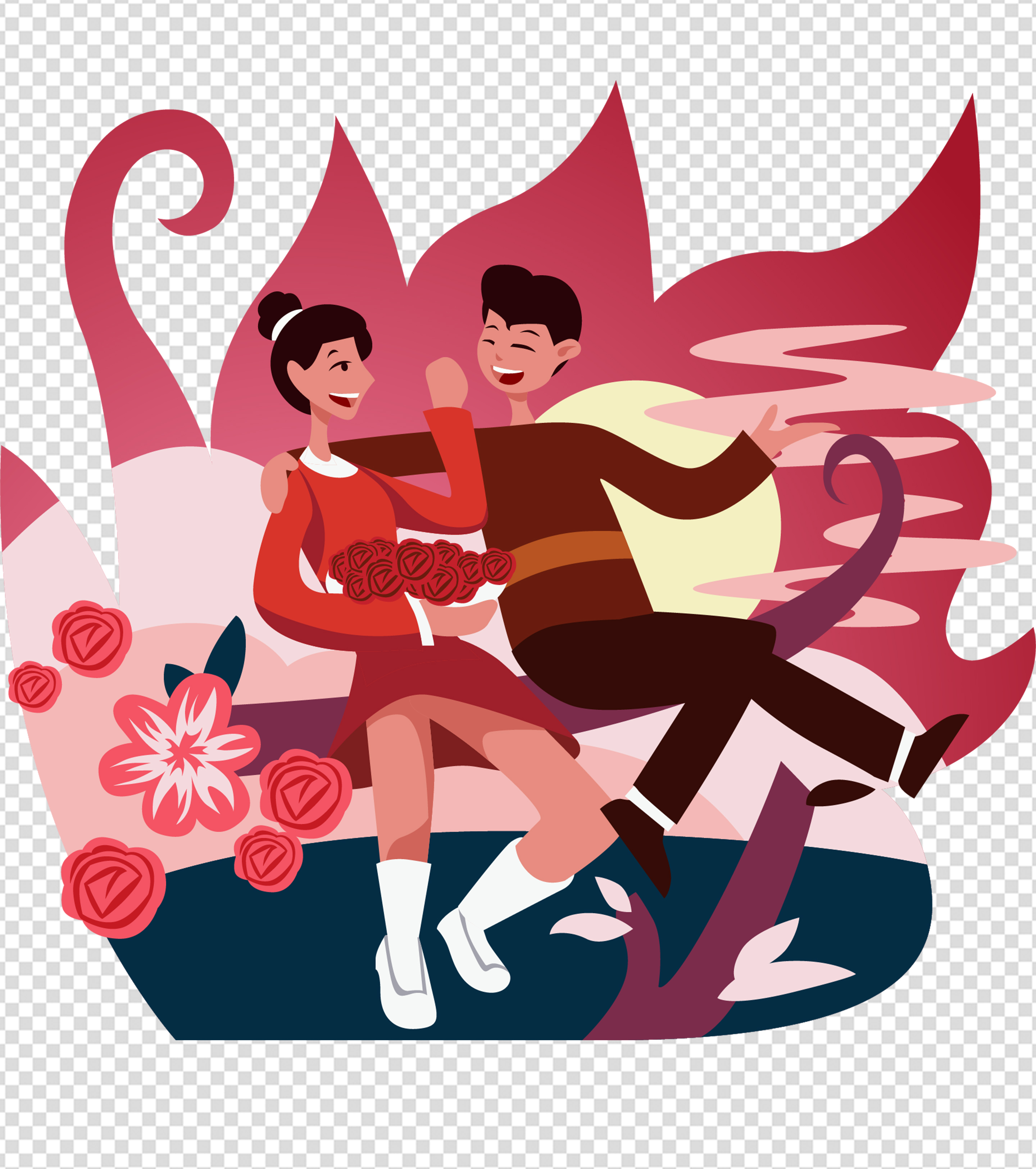 男孩女孩依偎表白元素
