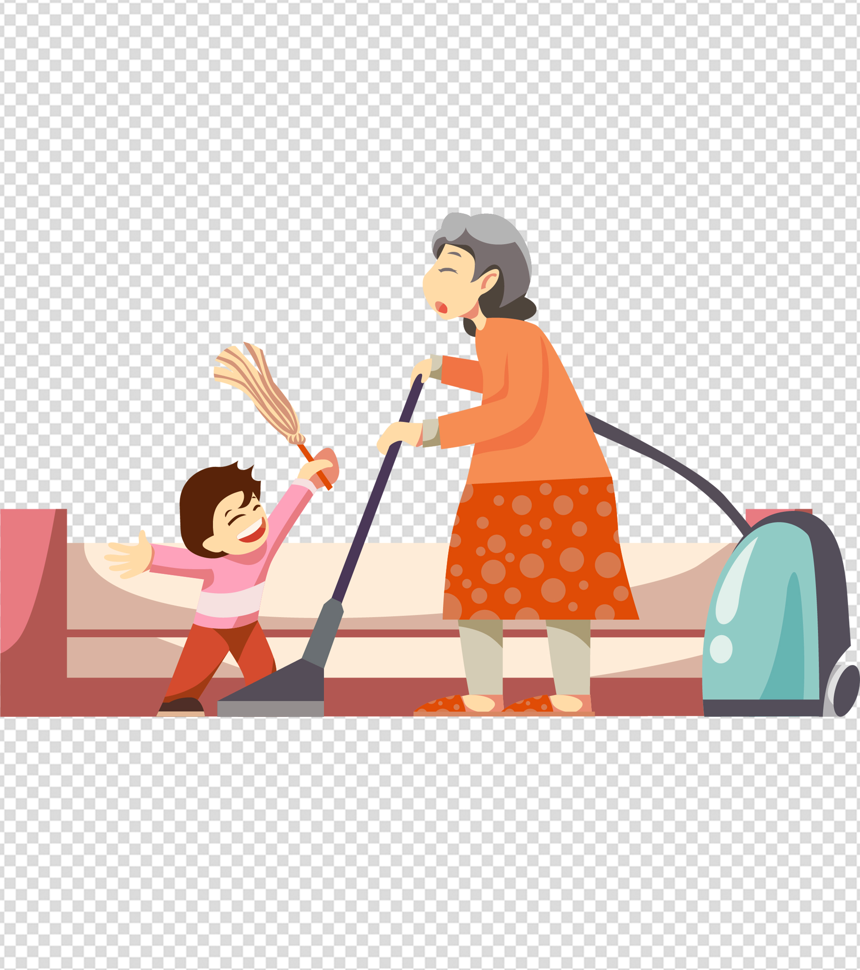 老人孩子拖地劳动节元素