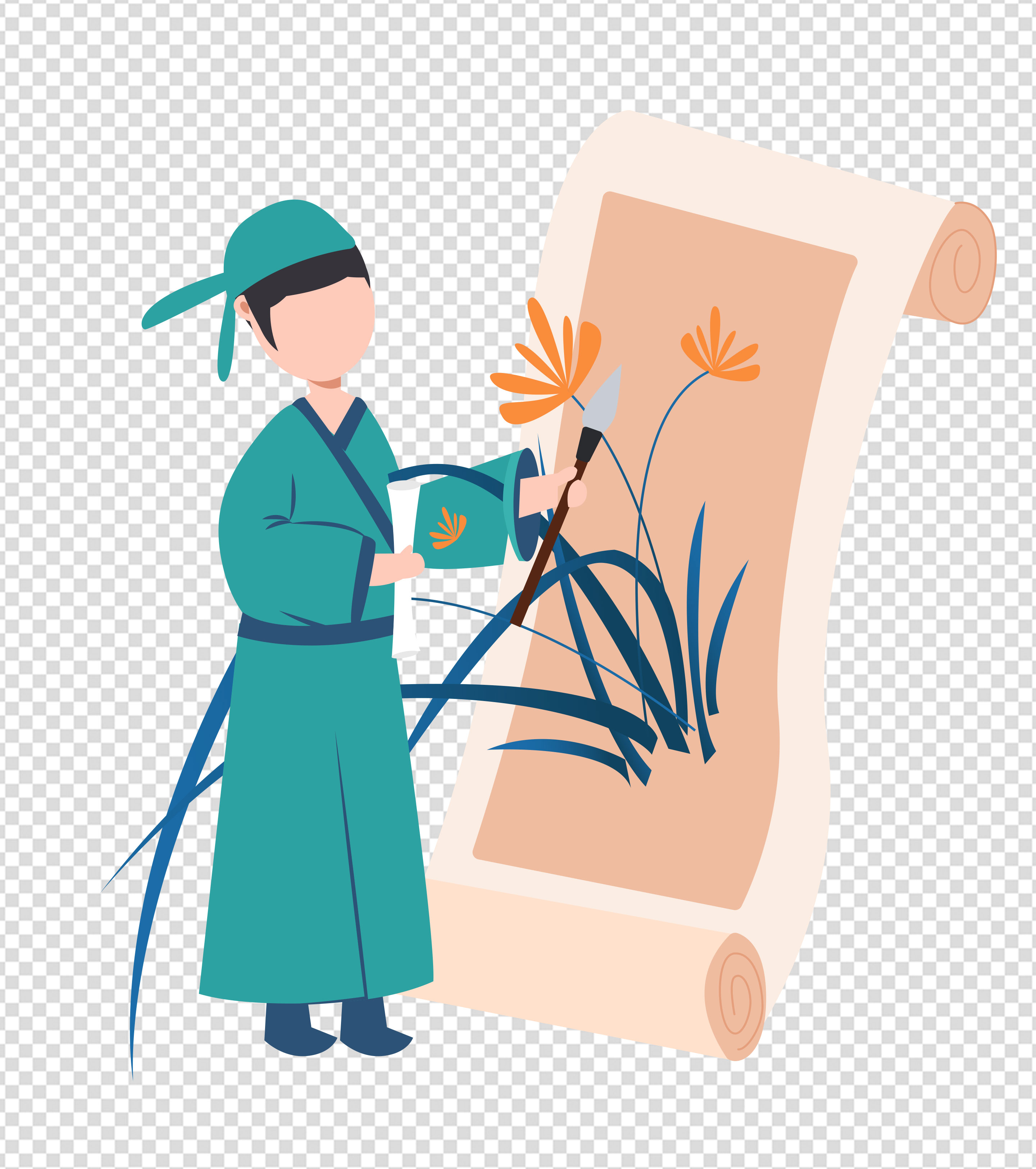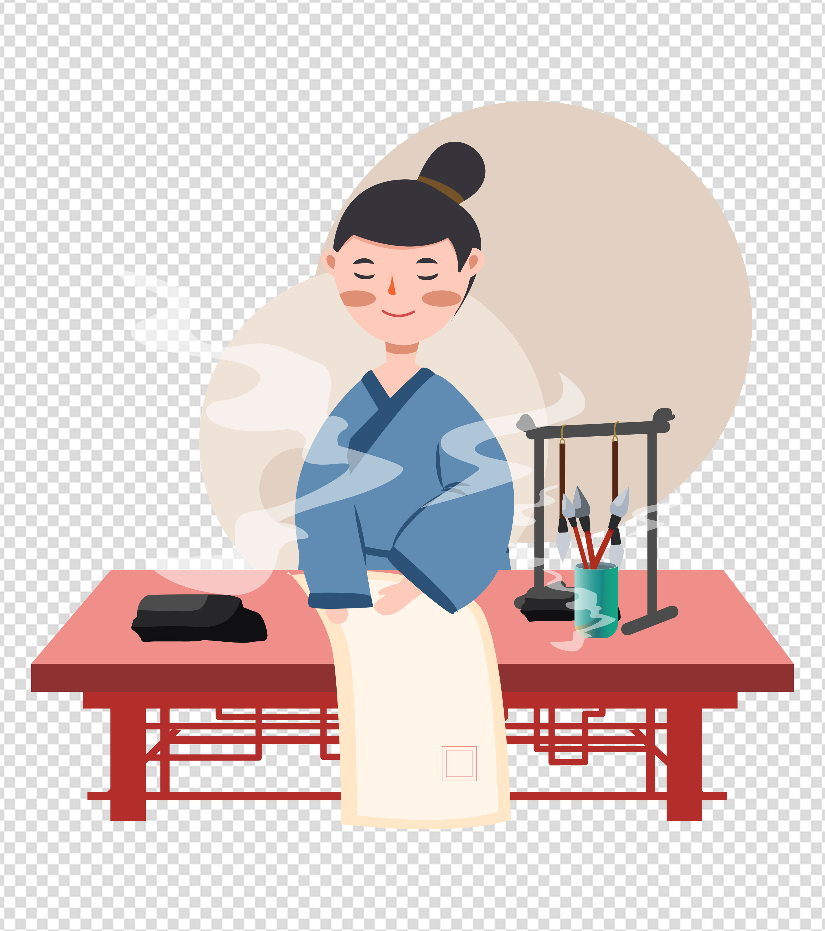 古代少年笔墨纸砚元素