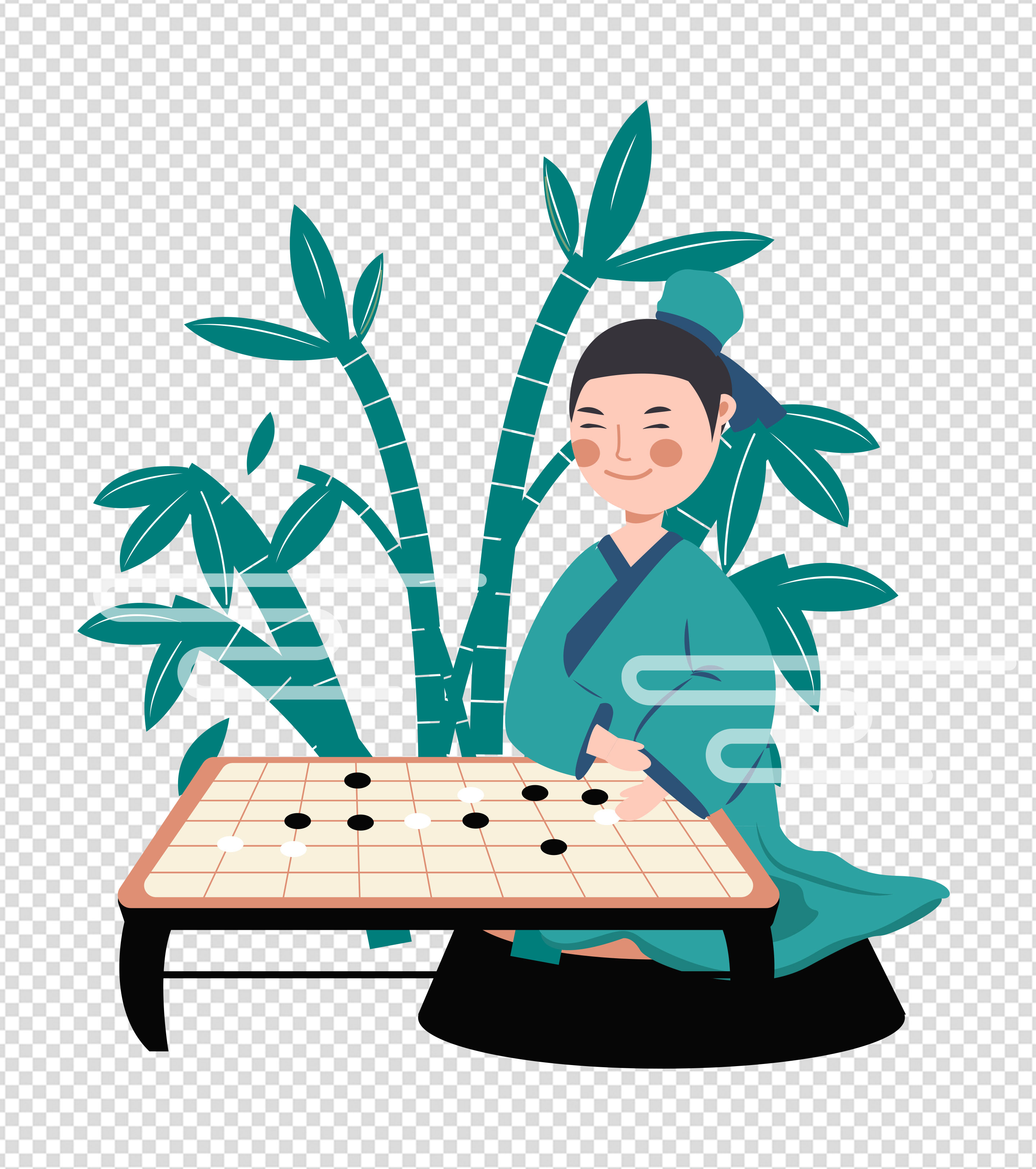 绿色国风男子下棋元素