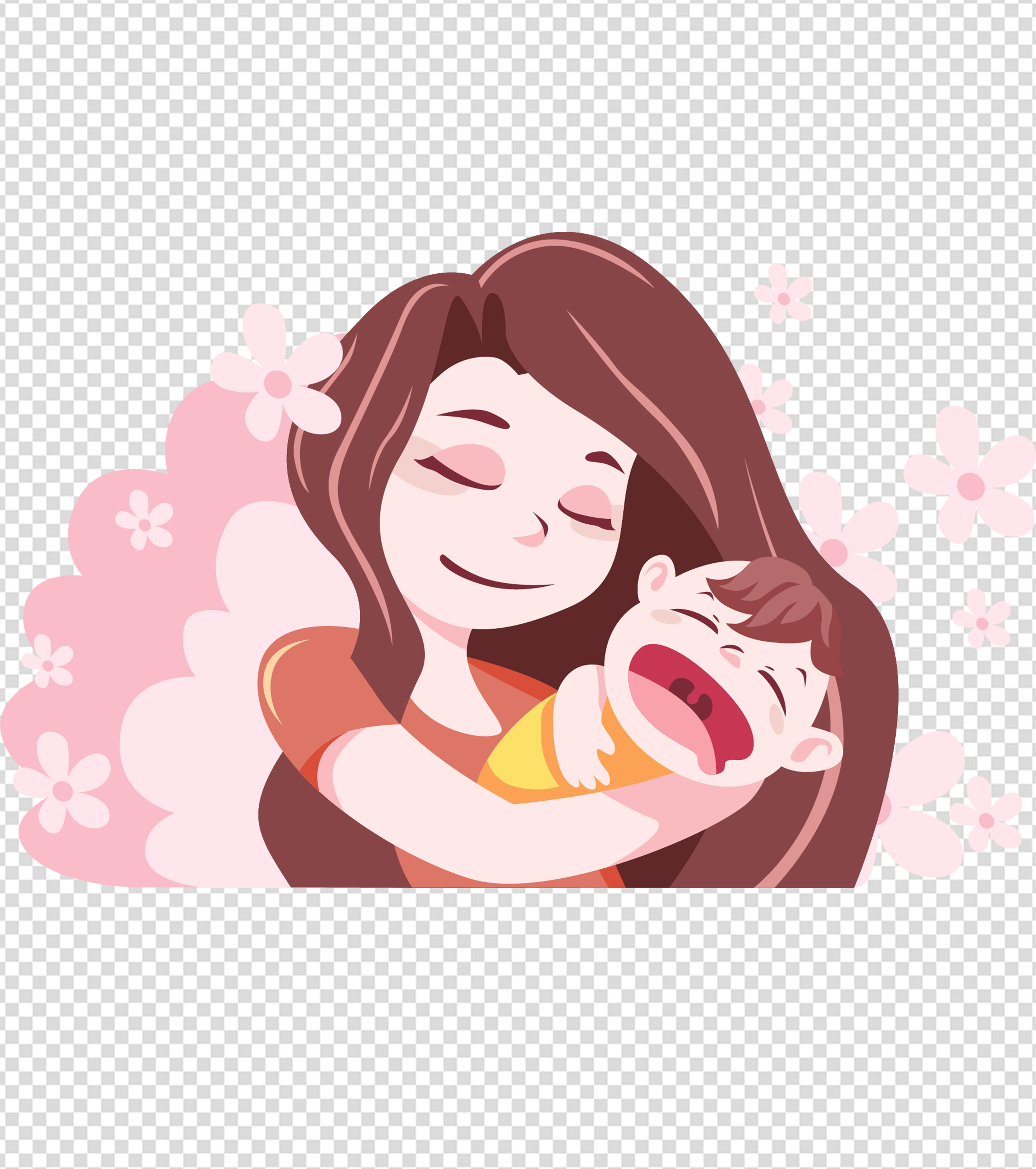 粉色母亲安抚婴儿手绘元素