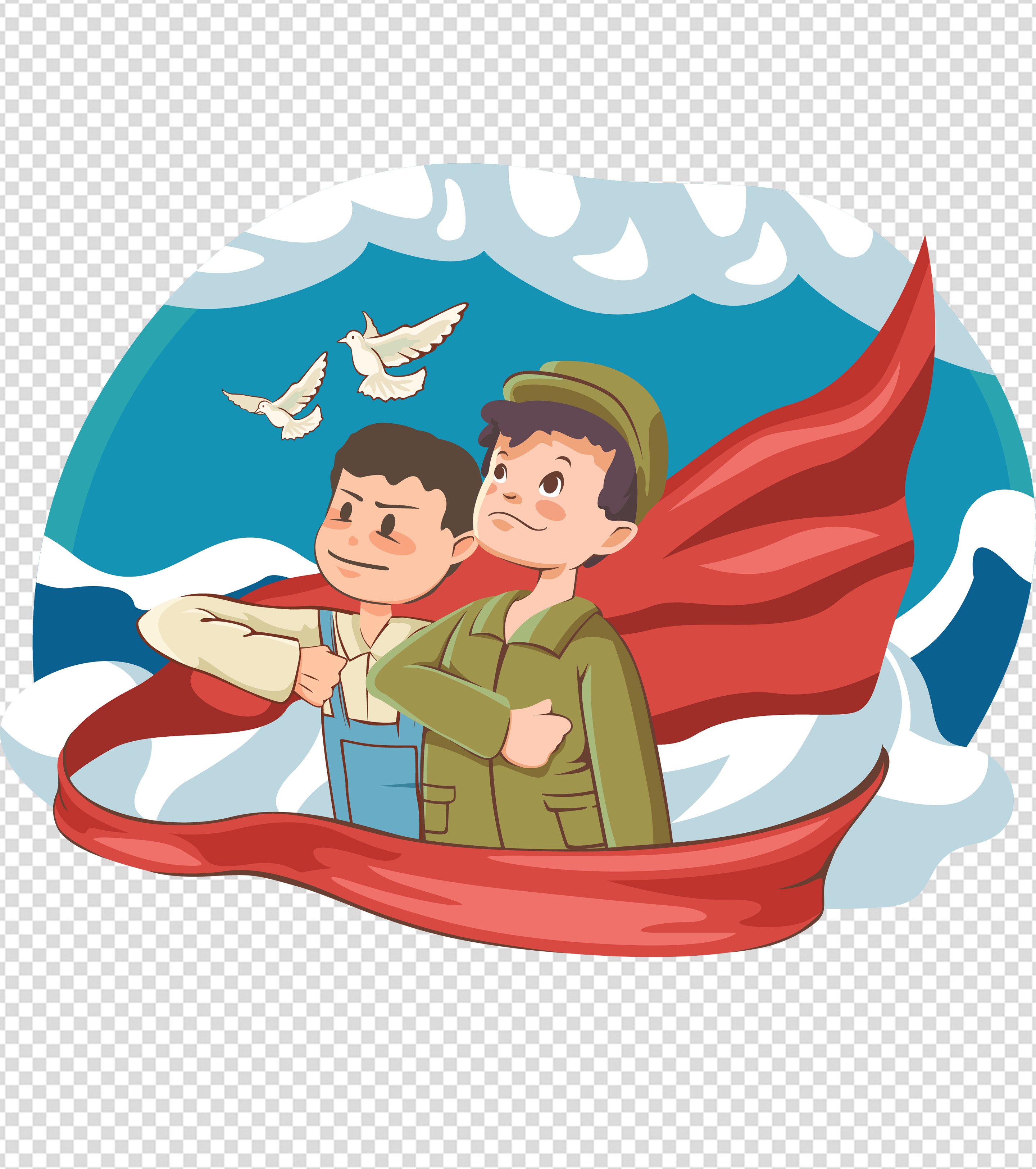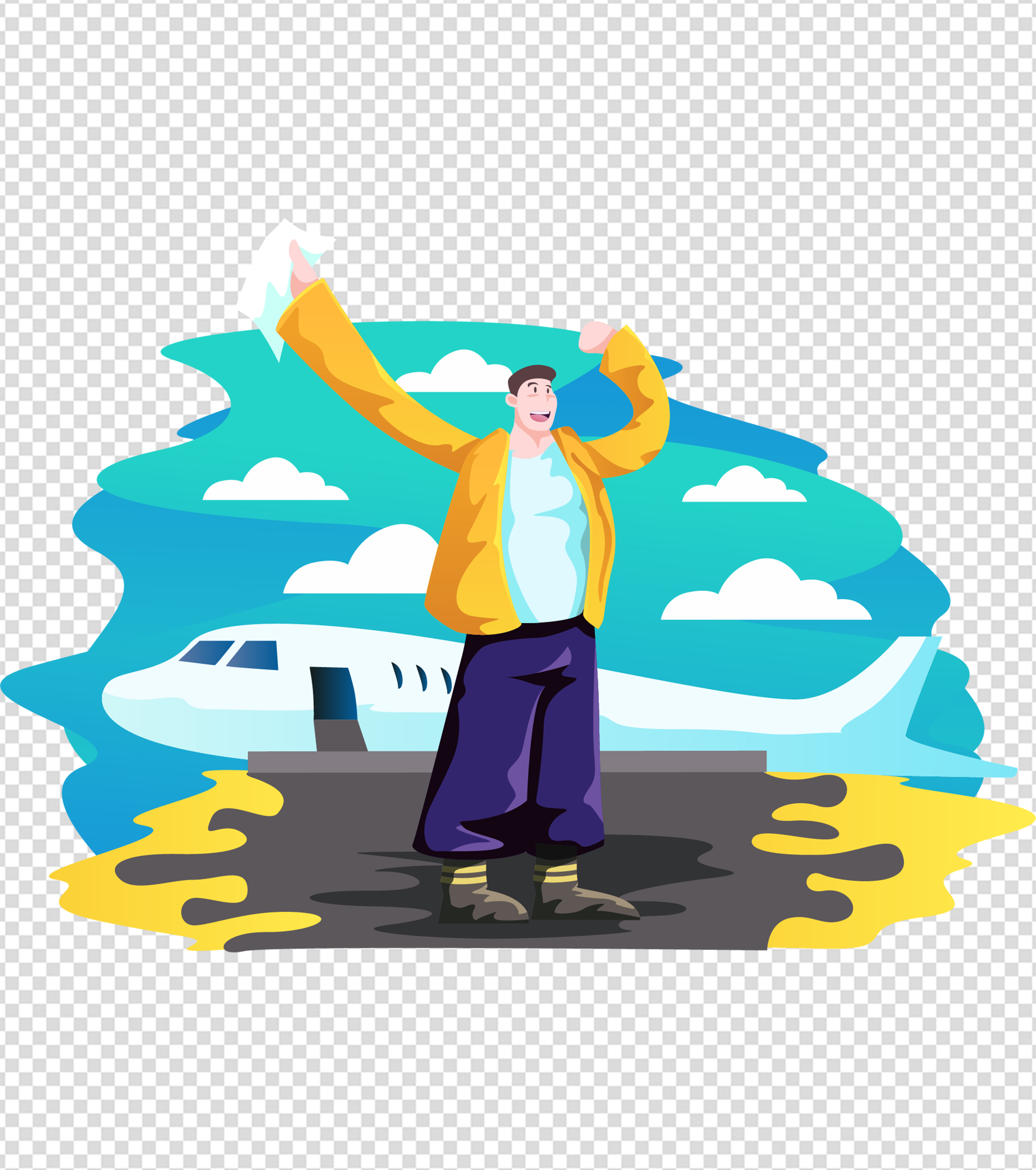 飞机下挥手男孩元素