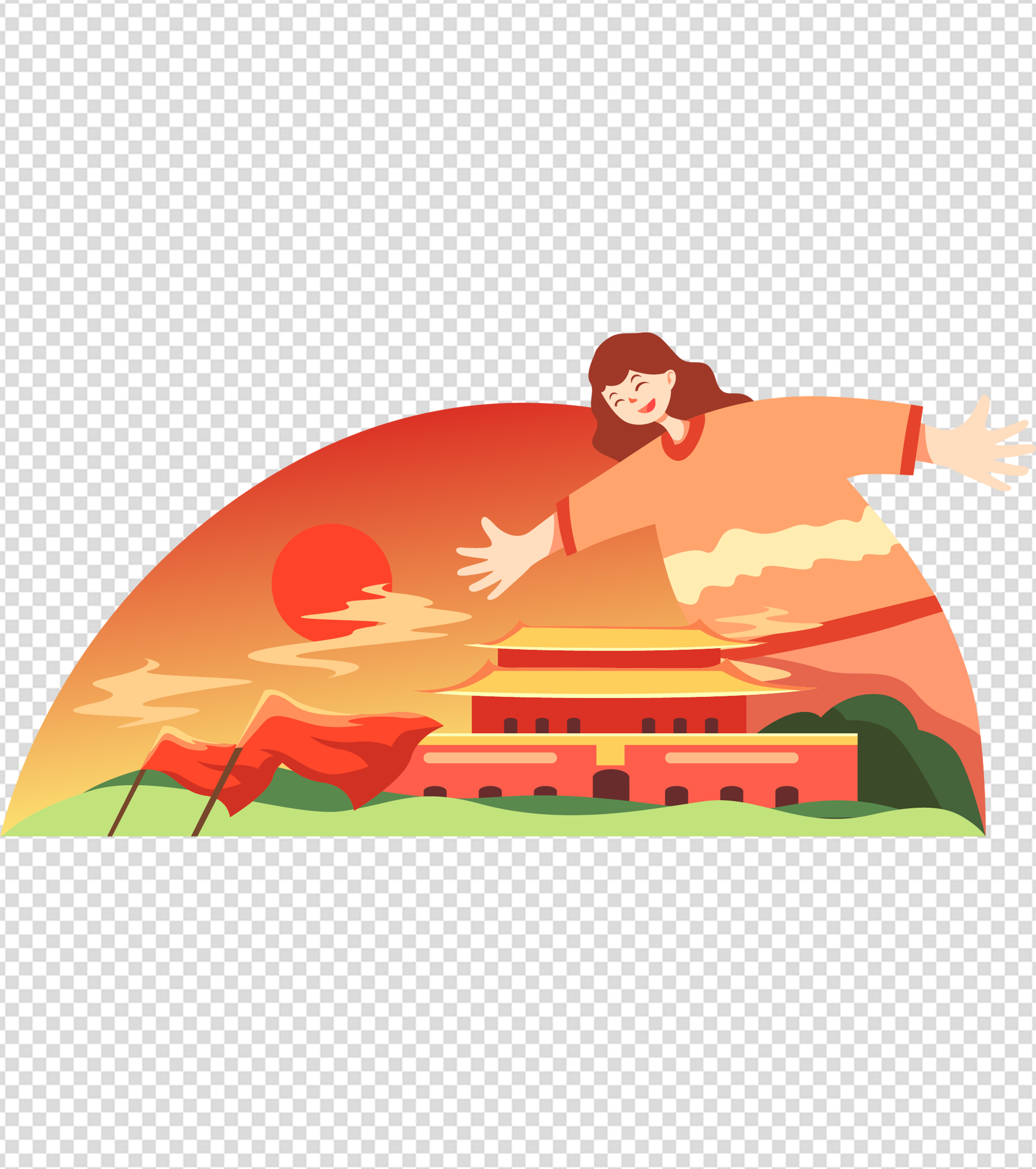 女孩拥抱天安门党建元素