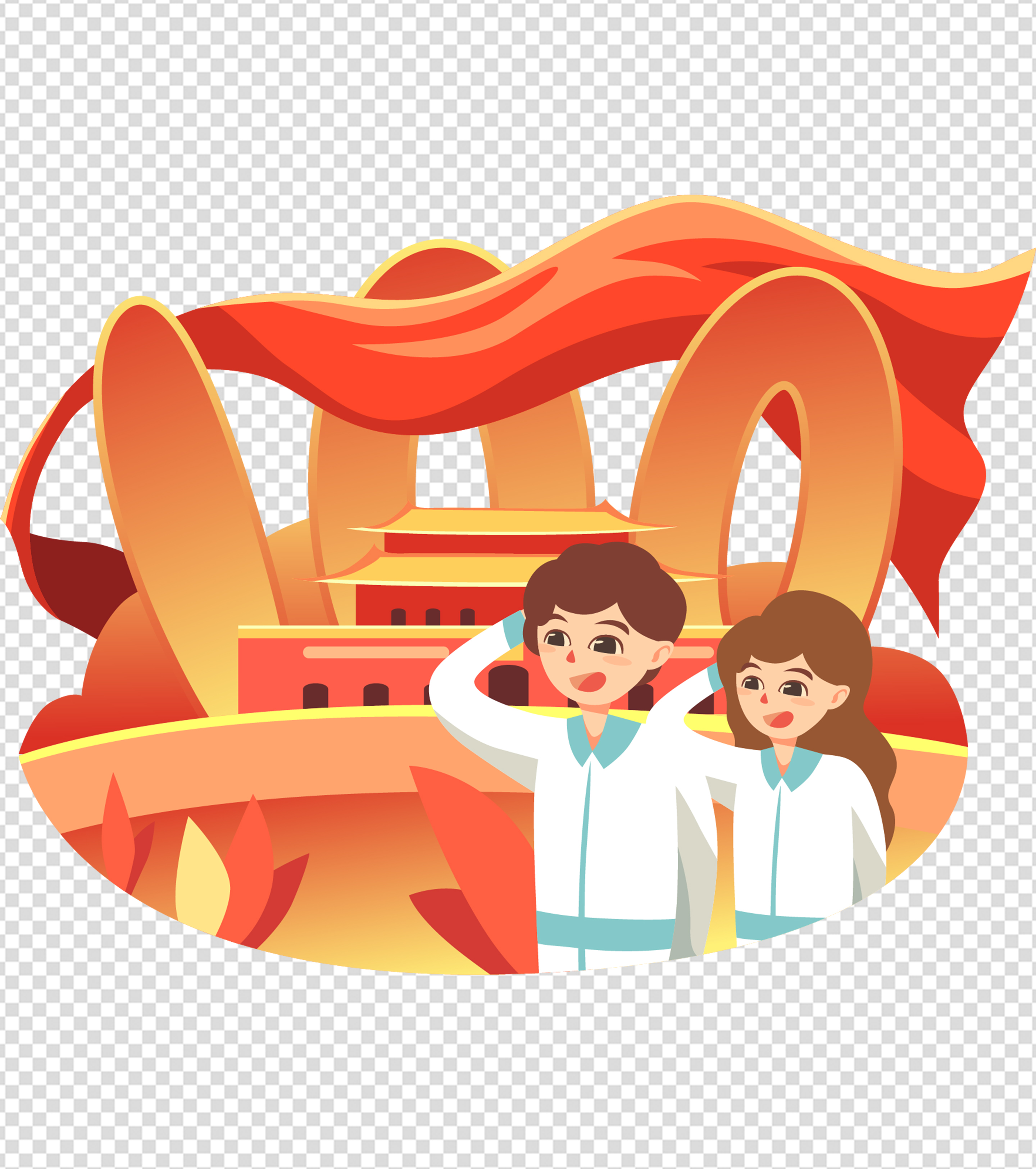 男生女生敬礼建党一百周年元素