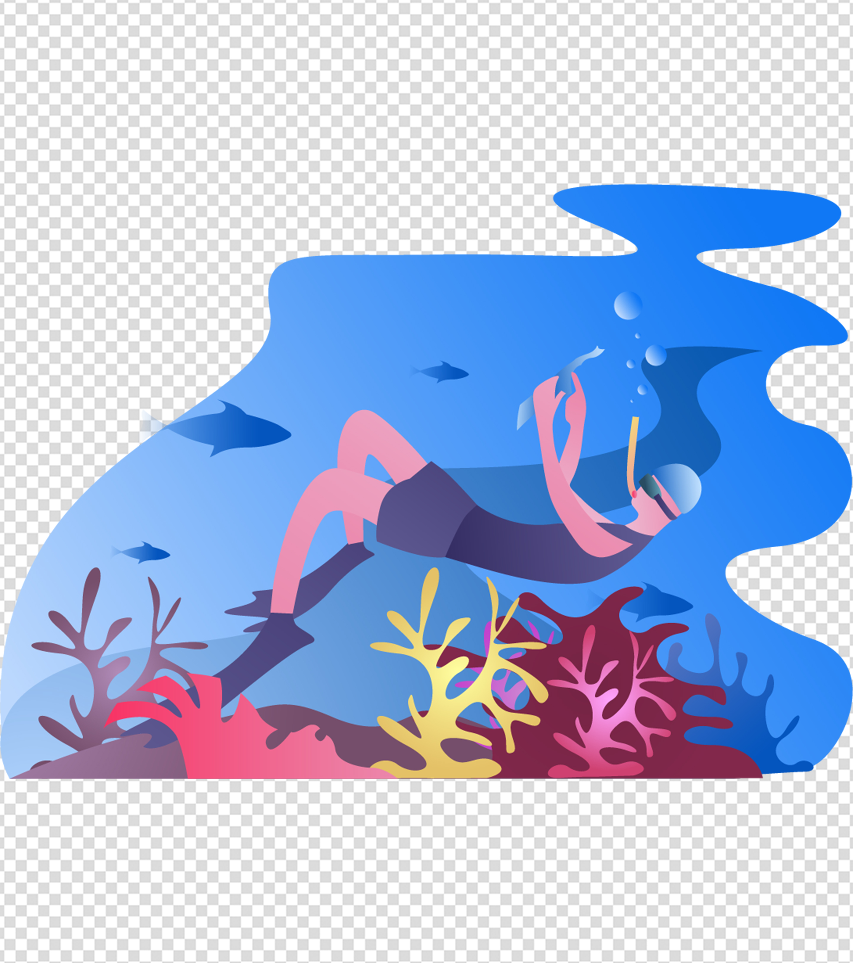 海底潜水男孩珊瑚元素