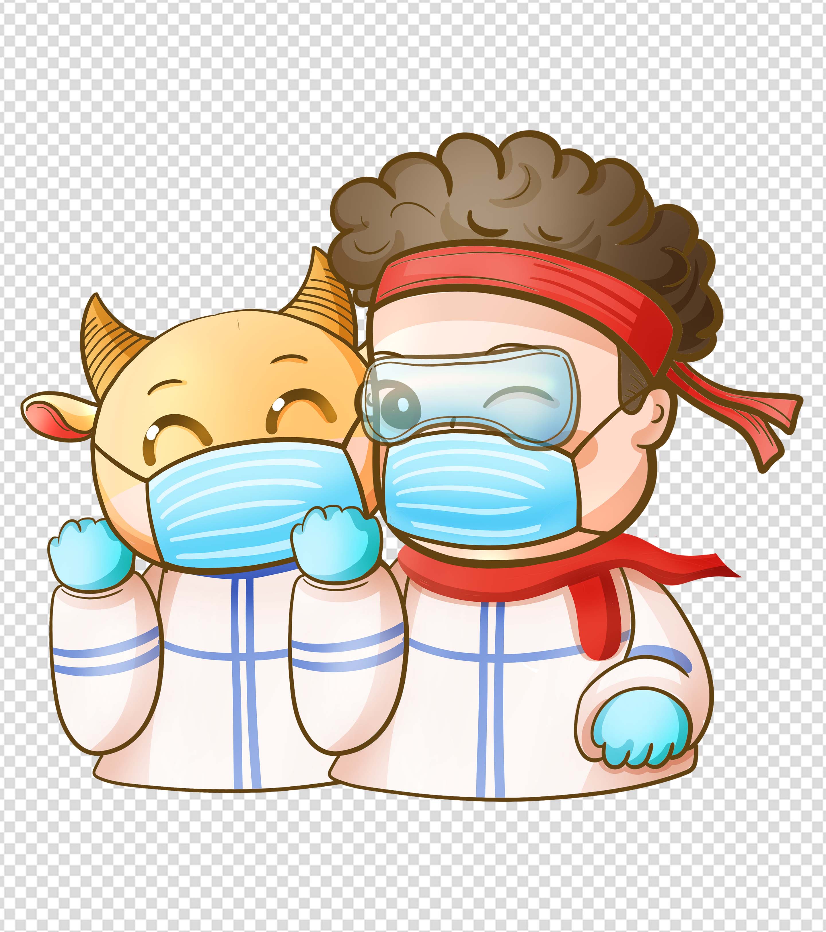 抗疫可爱卡通卷毛小男孩元素系列七
